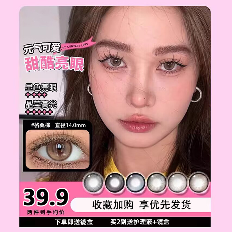 海俪恩美瞳月抛2片棕色小直径混血彩色隐形眼镜直径官方正品TF