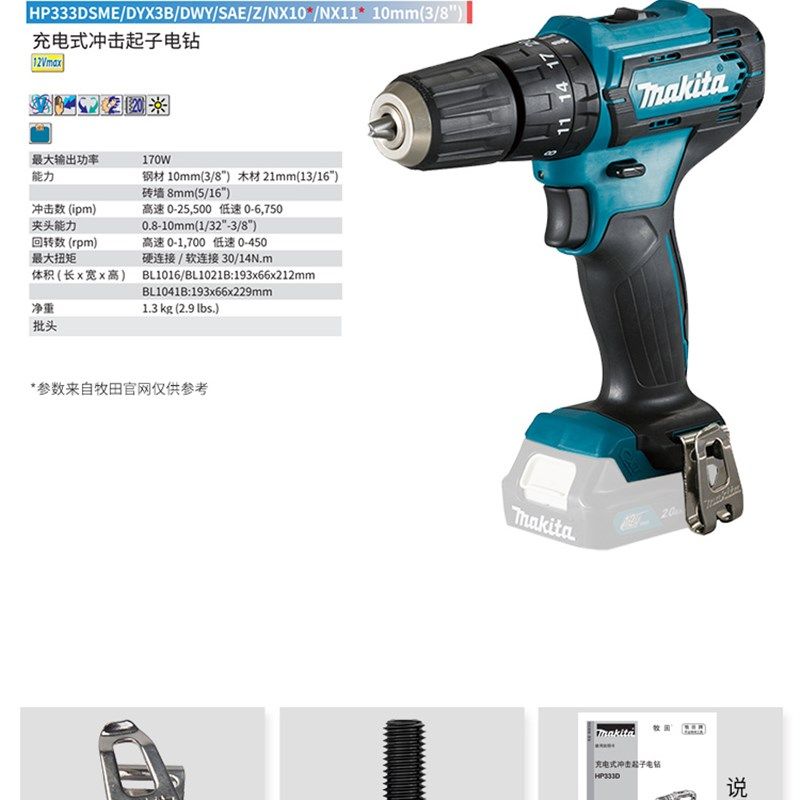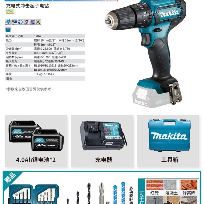 牧田DF333/HP333手持无线充电钻12V锂电无刷家用多功能电动螺丝刀