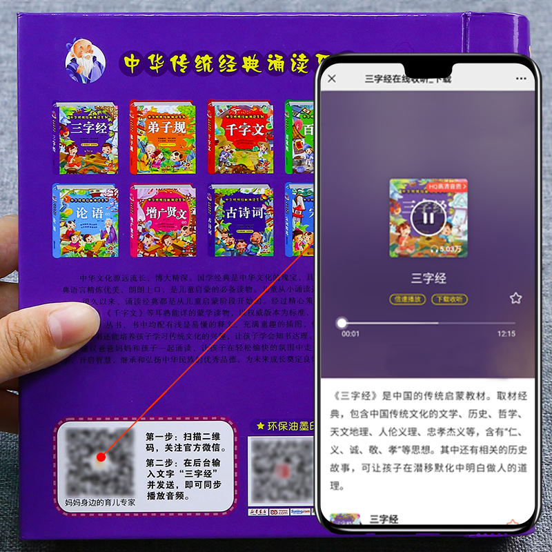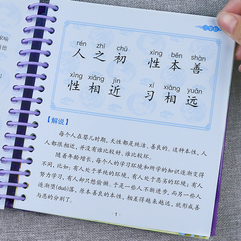 三字经注音完整版软精装幼儿早教有声读物彩图注音版幼儿园国学启蒙精装绘本宝宝睡前故事书亲子读物认知小学生一年级课外阅读书籍