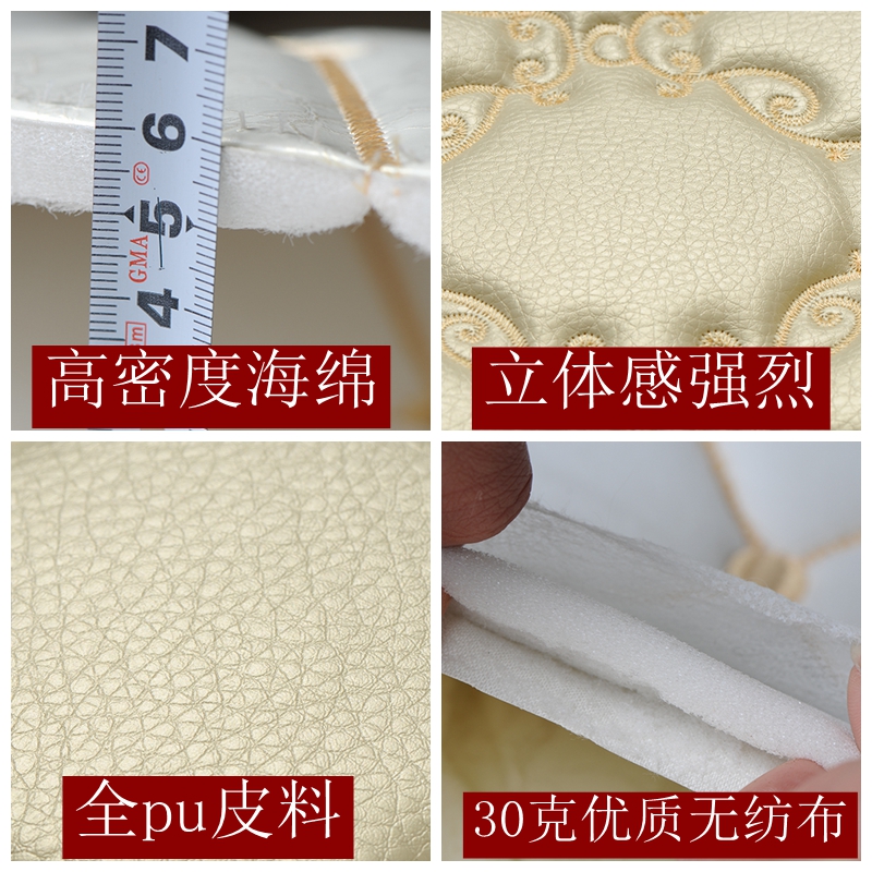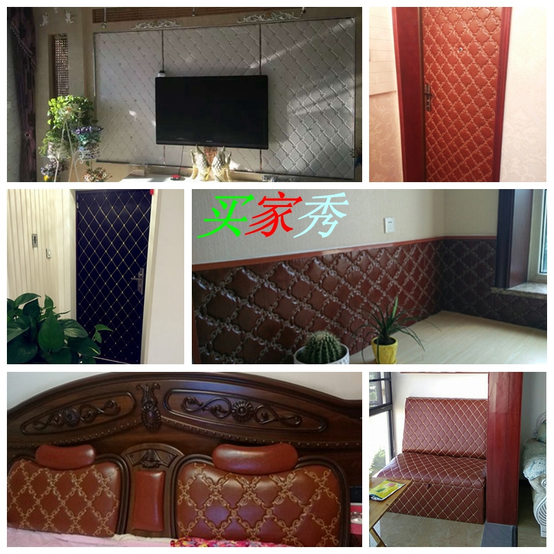 欧式软包背景墙皮革材料床头靠y背榻榻米面料入户门棉麻布自带海