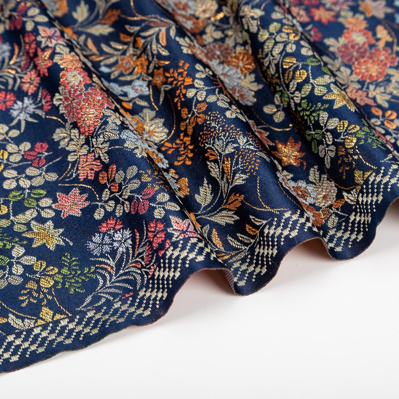 雏菊刺绣花布小卒花织锦缎和风西阵织布料出口织金