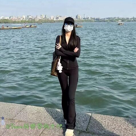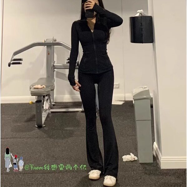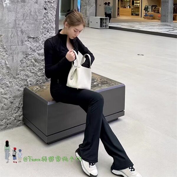 新品~From显腿长秋冬加绒国际版Groo冬季保暖高腰运动微喇叭裤女