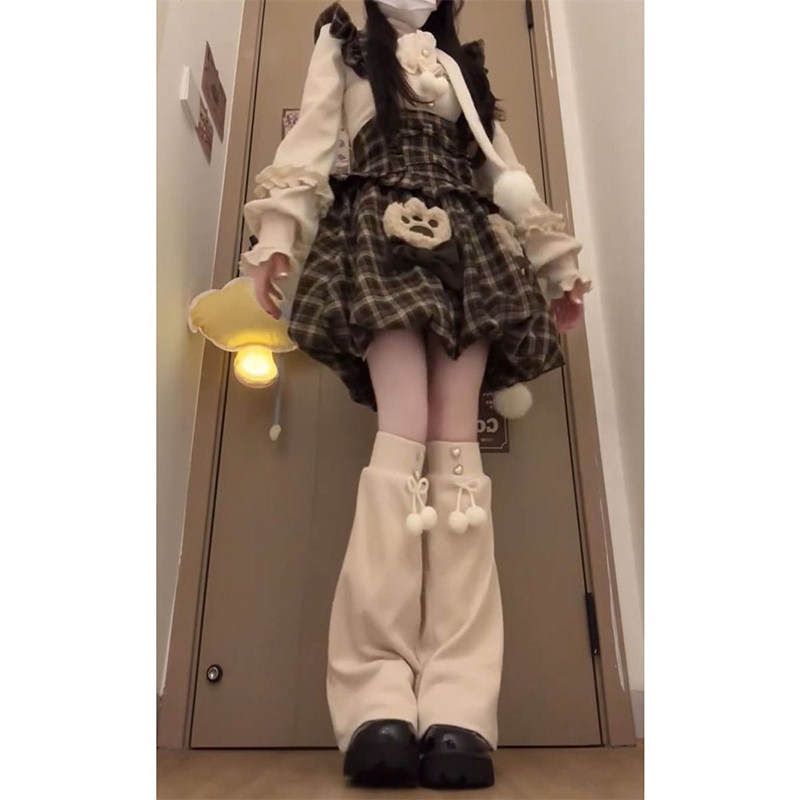 花苞连衣裙女+杏色针织上衣
