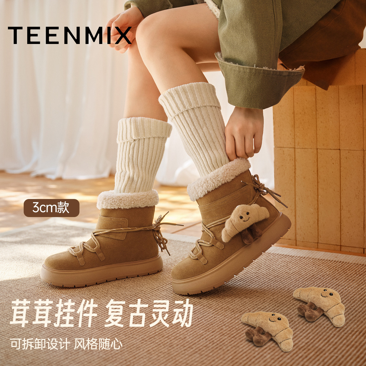 【李佳琦直播间】天美意厚底加绒毛毛保暖靴长靴女冬棉鞋