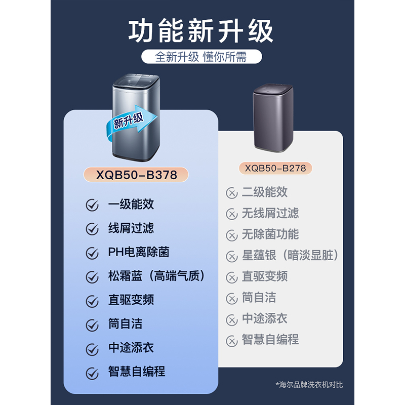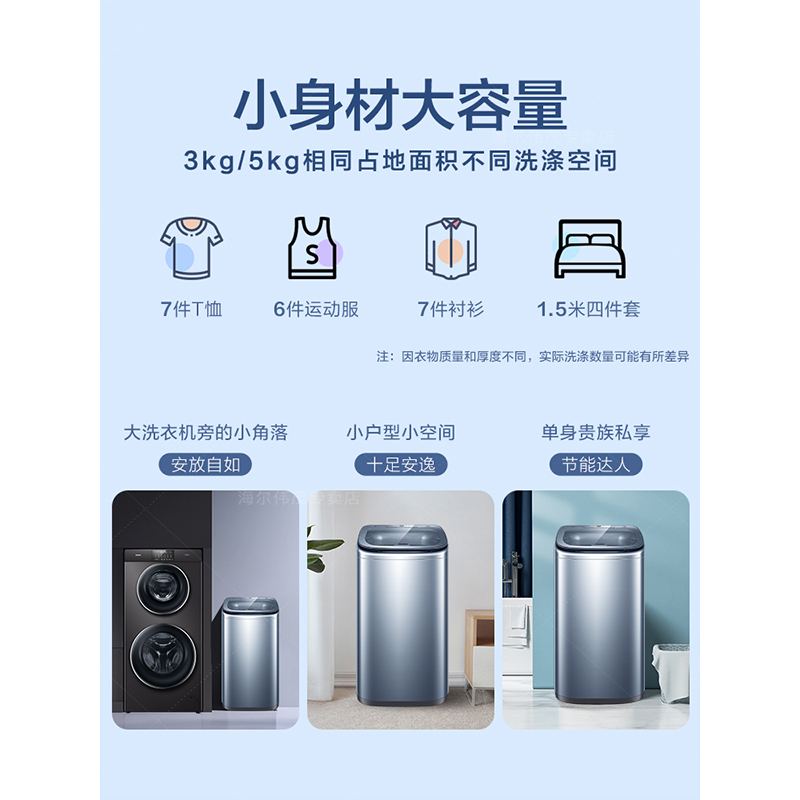 海尔迷你洗衣机5kg公斤小型婴儿全自动儿童家用直驱波轮旗舰B378