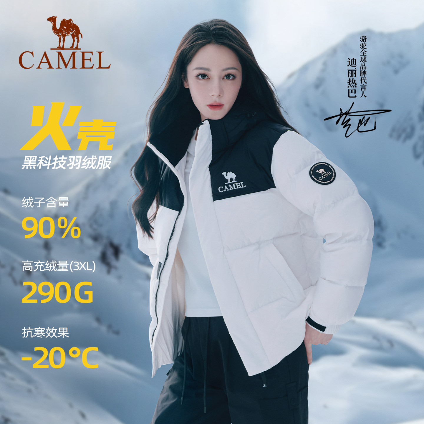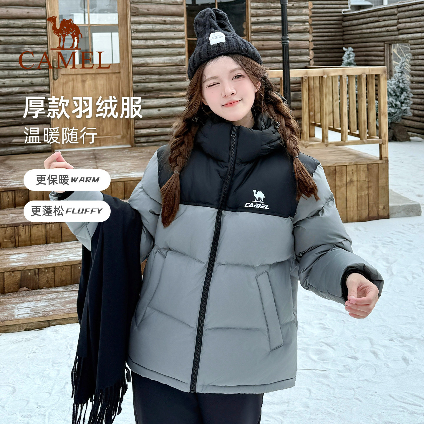 迪丽热巴同款骆驼女装羽绒服防泼水防风面包服加厚保暖拼色外套男