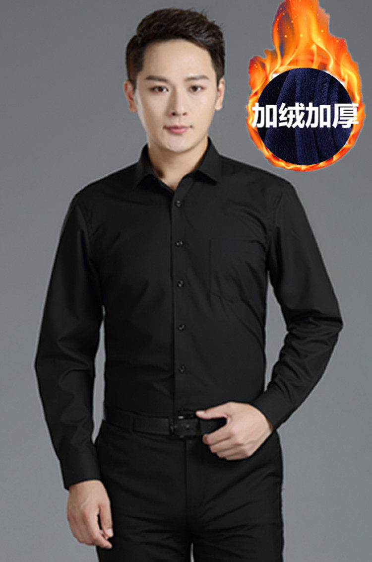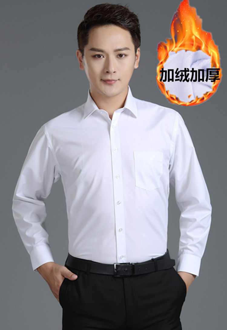 冬季保暖衬衫男加绒加厚休闲宽松肥佬加肥加大白色衬衣胖子特大码