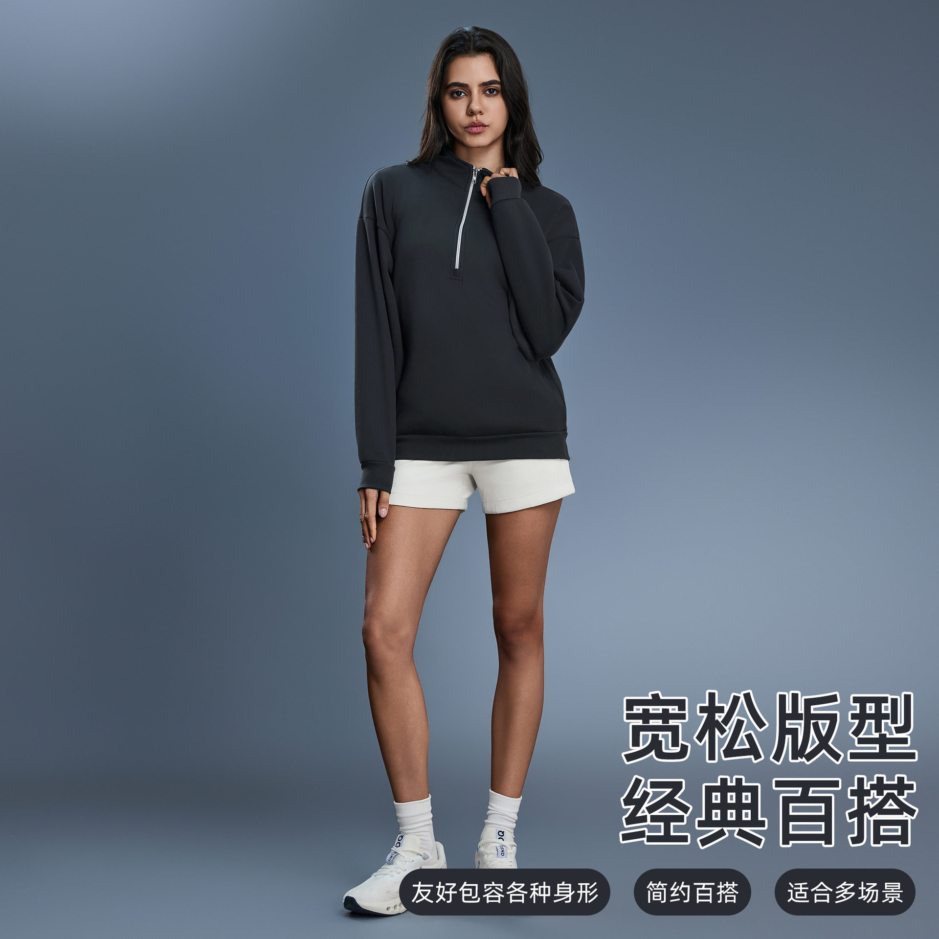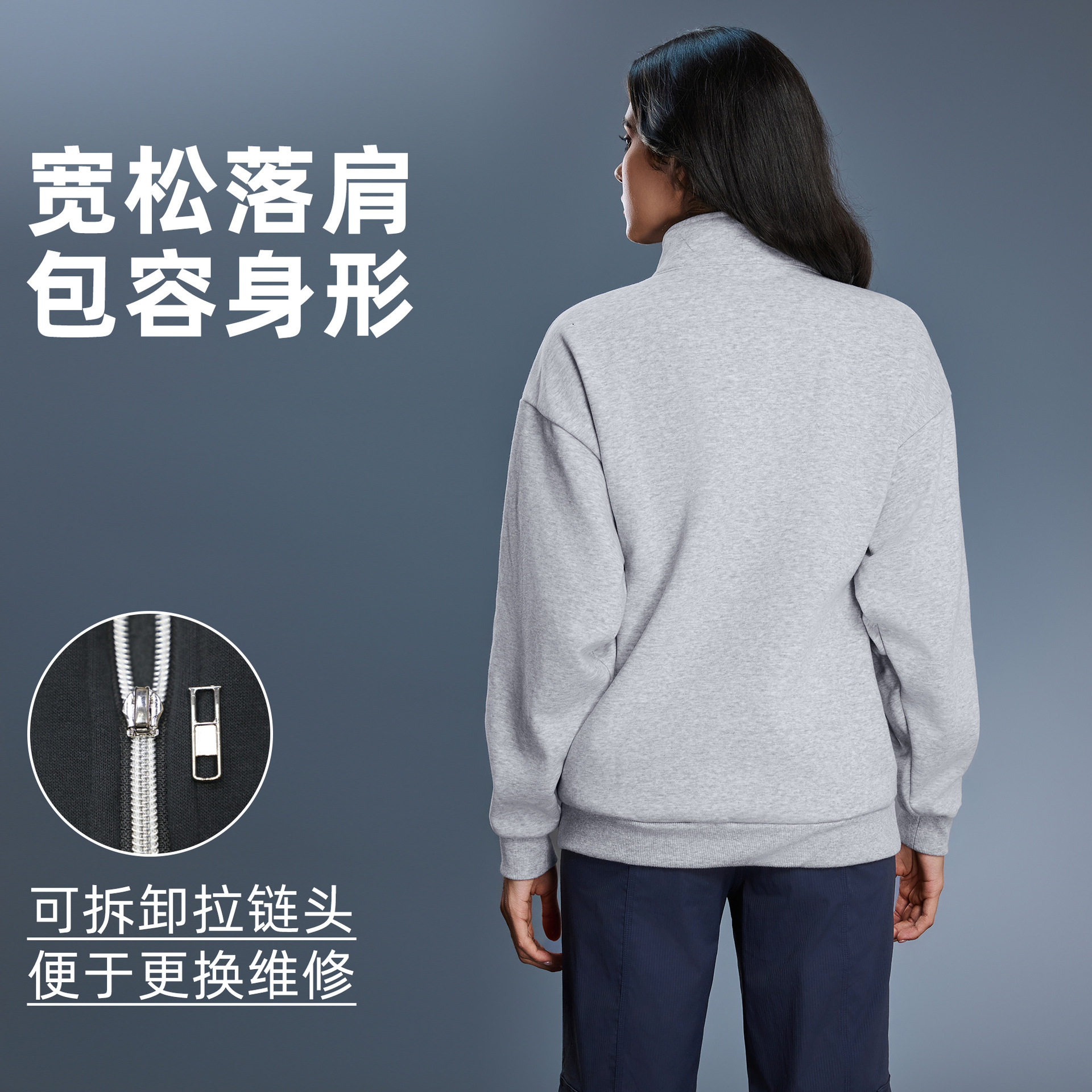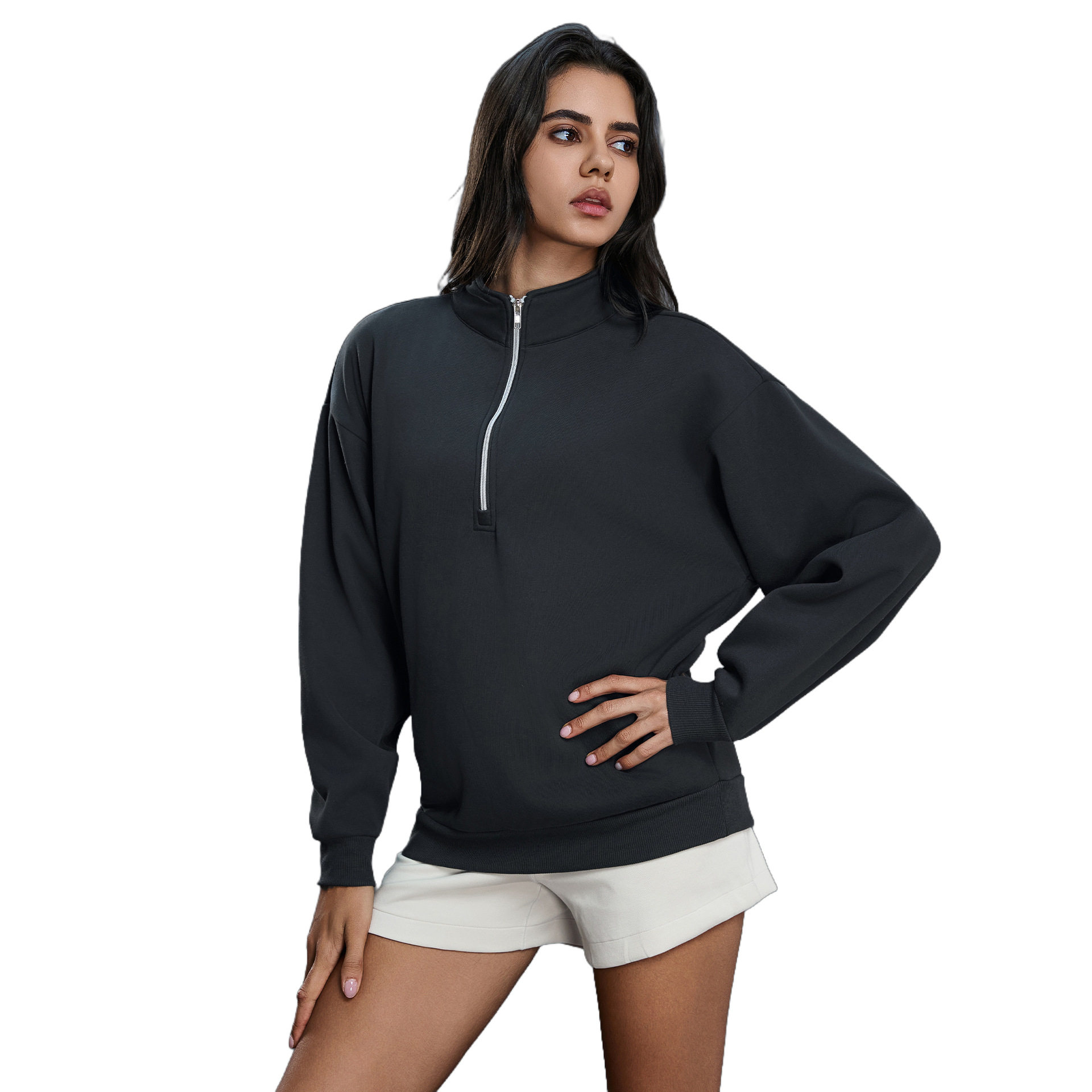 半拉链加绒加厚立领长袖卫衣外套