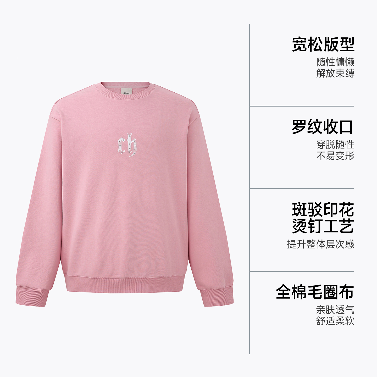 CHINISM赤尘粉色烫钉圆领卫衣男