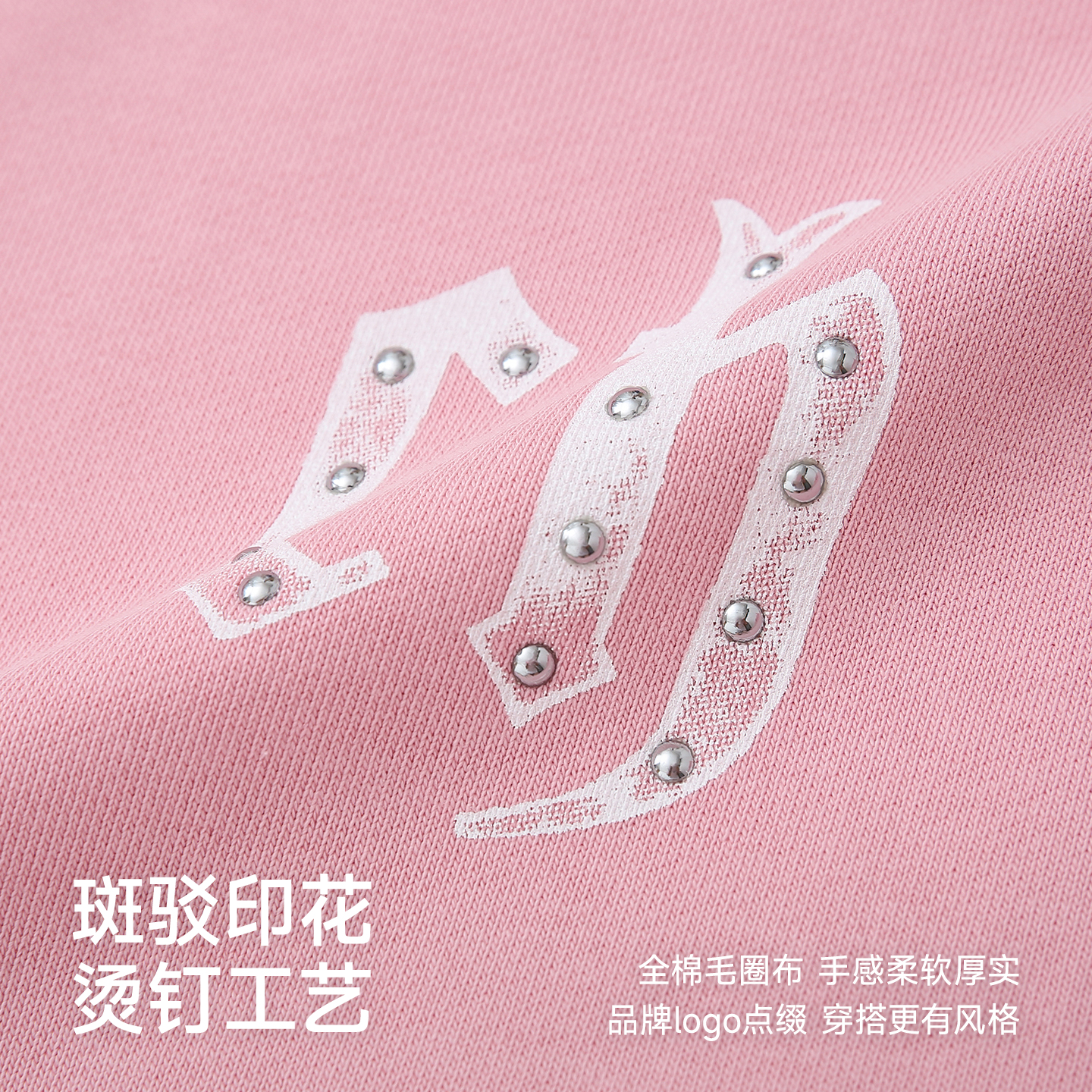 CHINISM赤尘 粉色烫钉圆领卫衣男秋季新款美式潮牌宽松休闲上衣