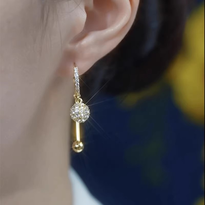 设计感时尚钻球耳扣满钻耳环女2025年新款潮韩国气质网红百搭耳饰