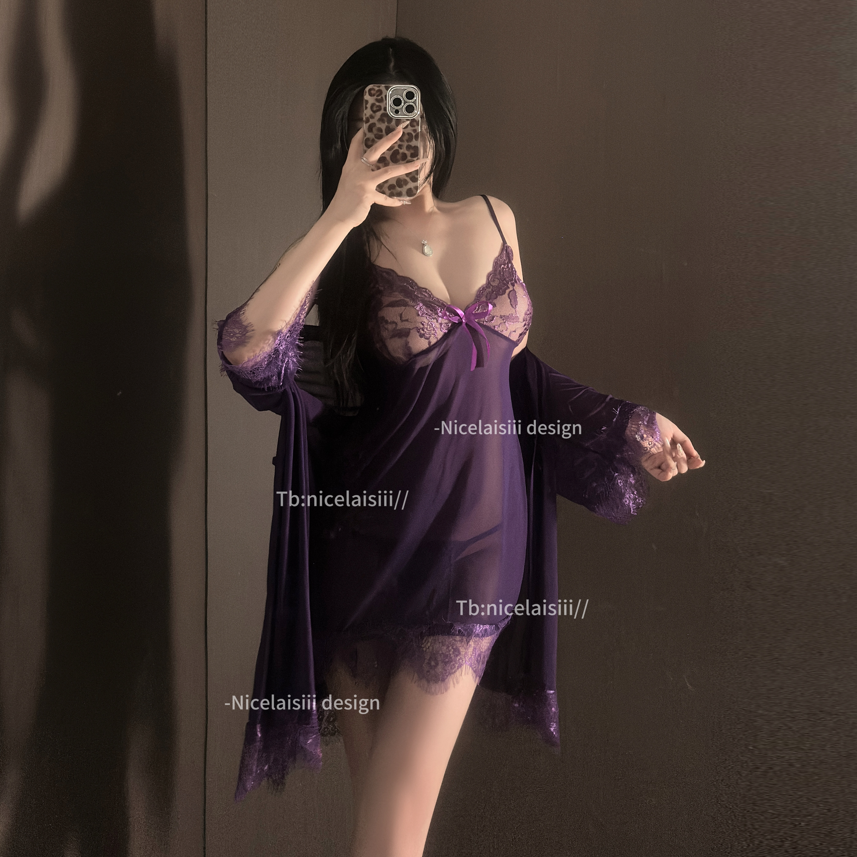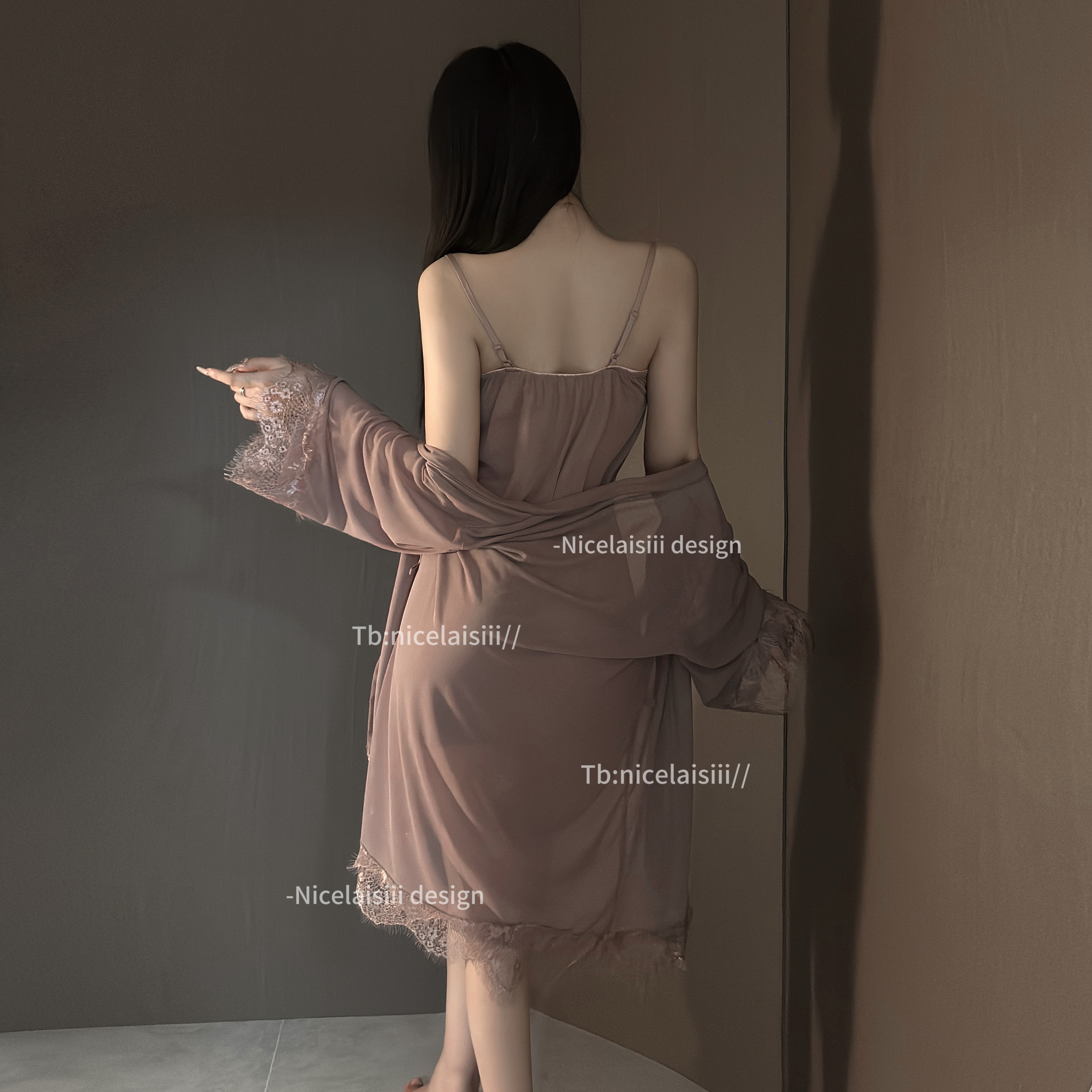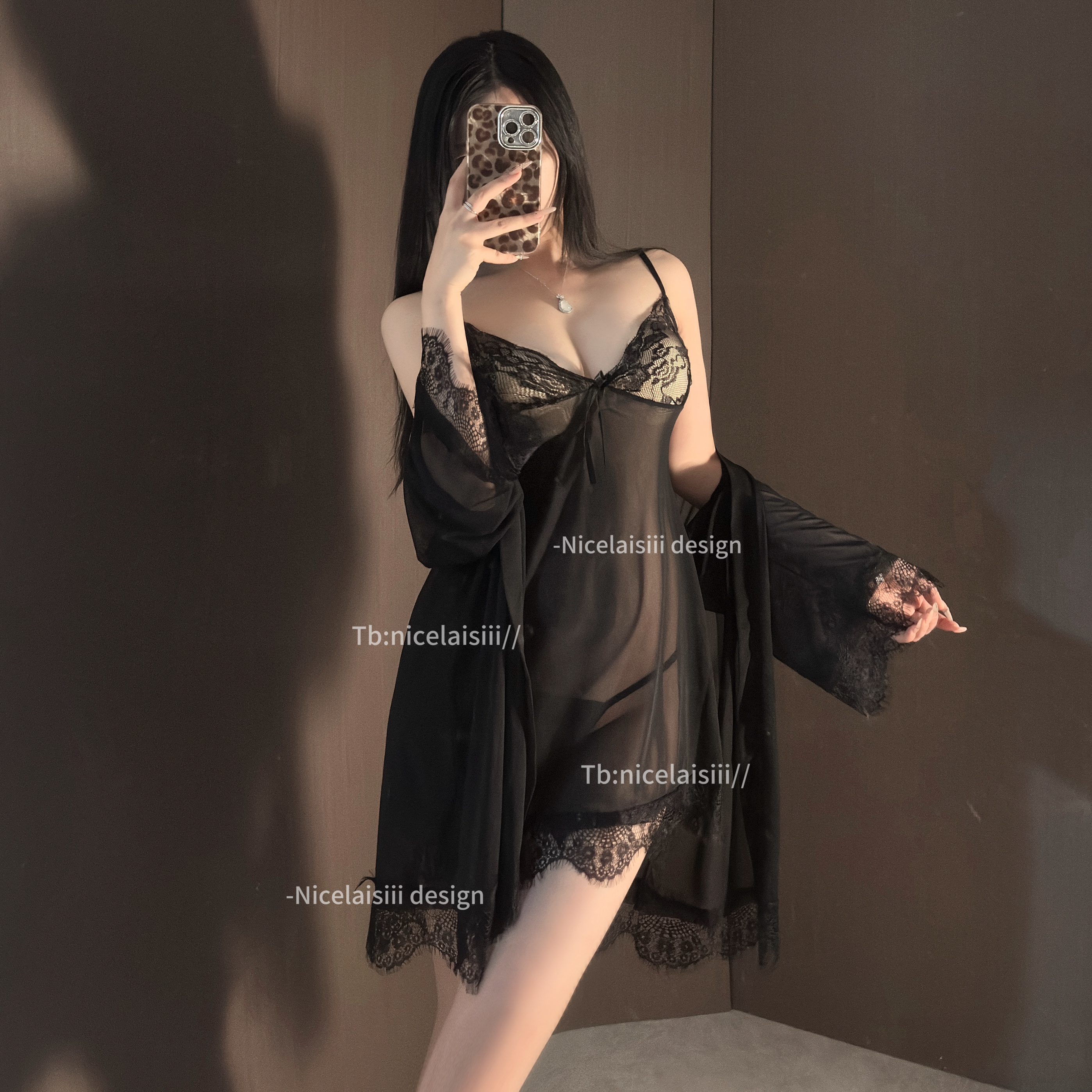 Nicelaisiii轻纱 性感纯欲蕾丝吊带睡裙镂空透明网纱辣妹约会睡衣