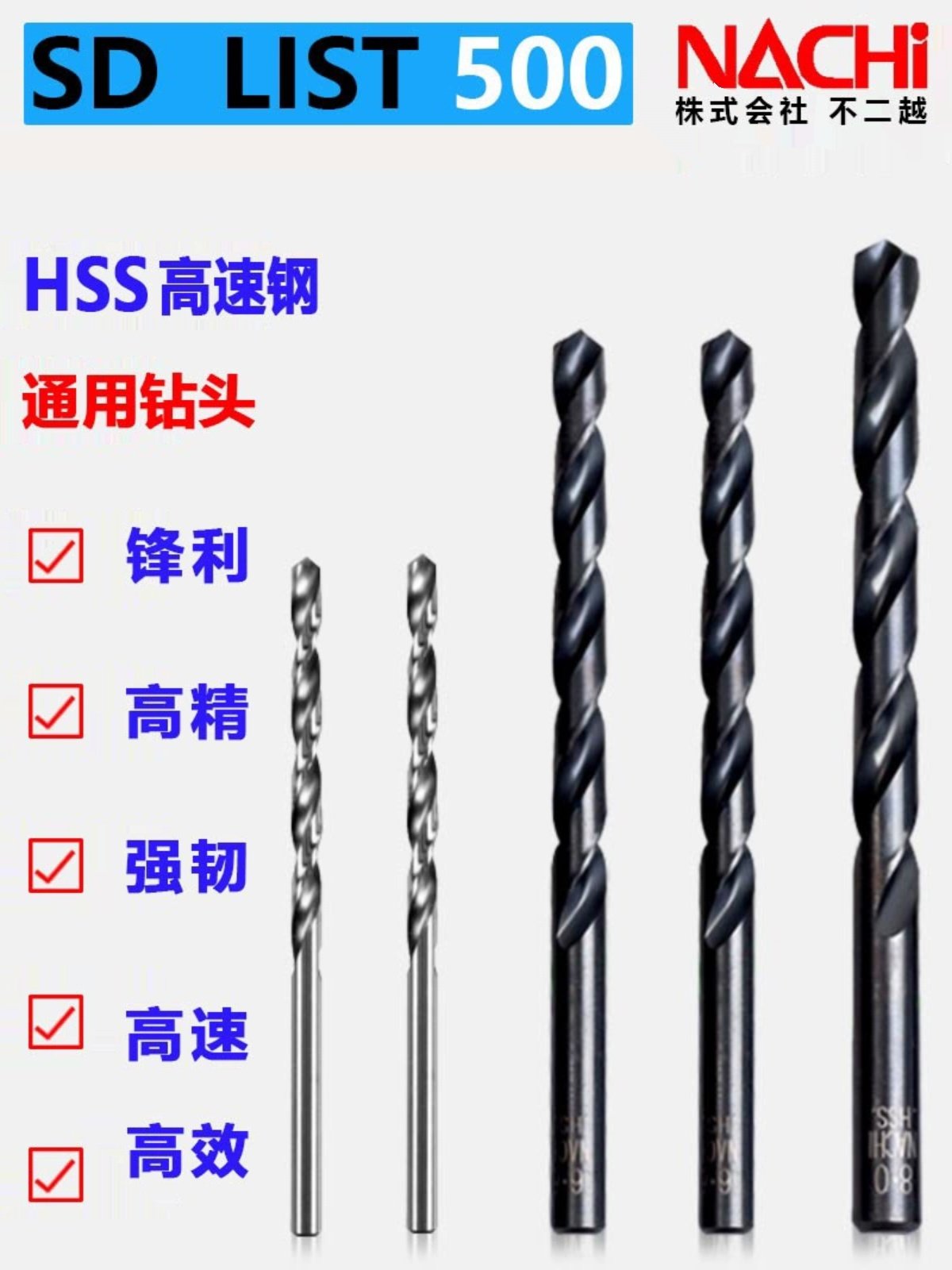 日本NACHI不二越LIST500直柄麻花钻头0.5 1 2 3 5 6 10-16mm 钻头