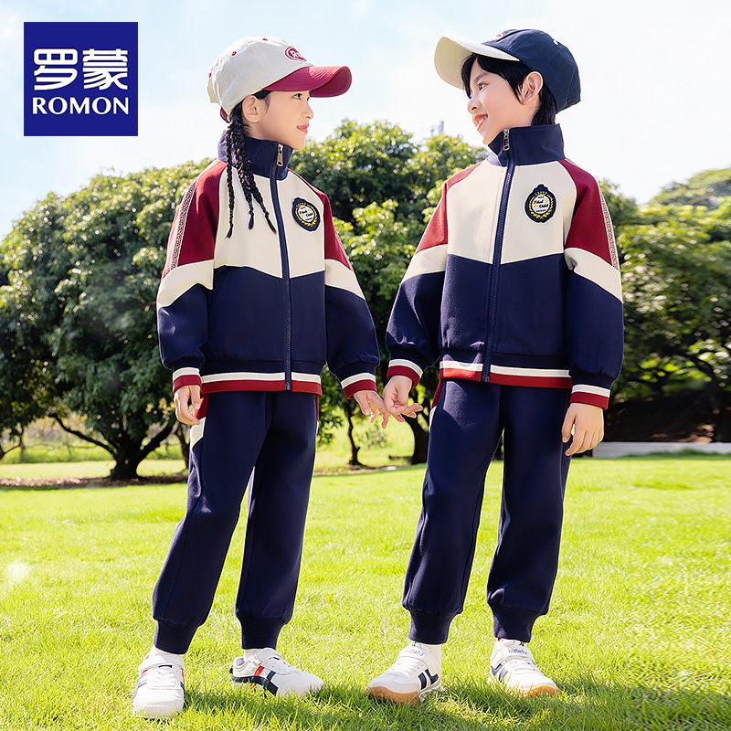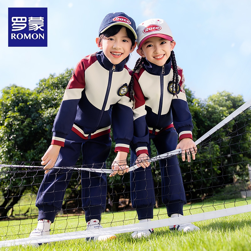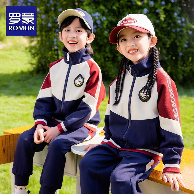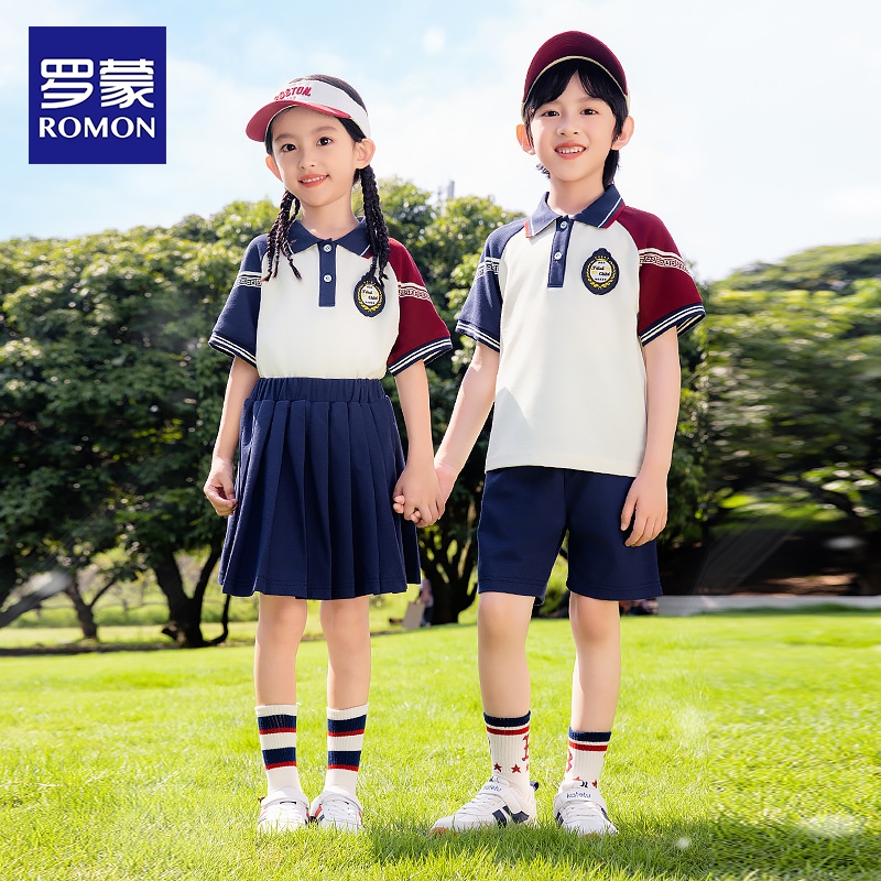 罗蒙校园小学生班服套装春秋款运动服2024新款幼儿园园服夏季短袖