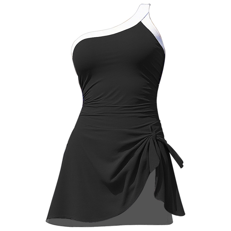 欧美2025新款单肩泳衣女大码保守风裙式连体遮肚子显瘦泳装泡温泉
