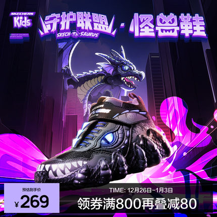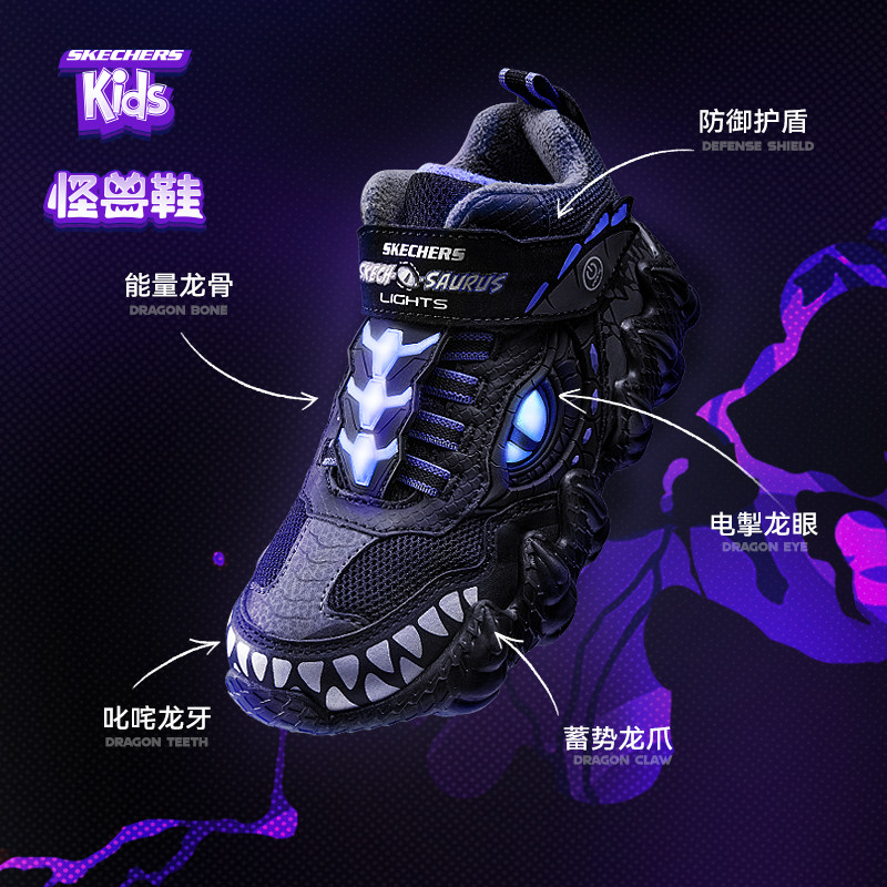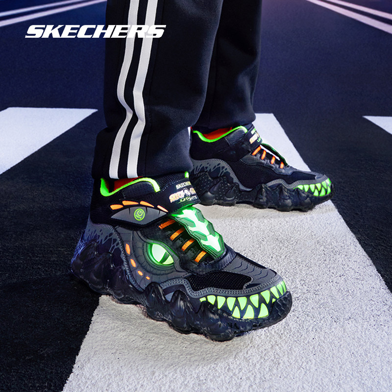 Skechers斯凯奇童鞋怪兽鞋男童轻质柔软回弹中帮儿童休闲鞋闪灯鞋