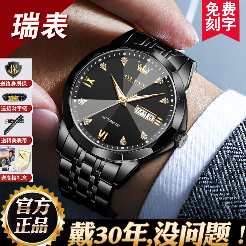 官方旗舰店瑞士正品男士手表男款机械表全自动防水男表黑武士十大