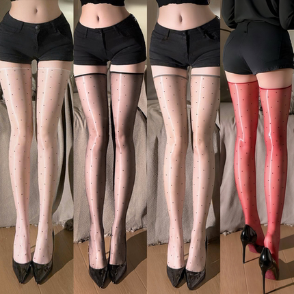 0D极光油亮波点黑丝袜超薄款