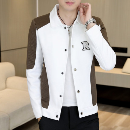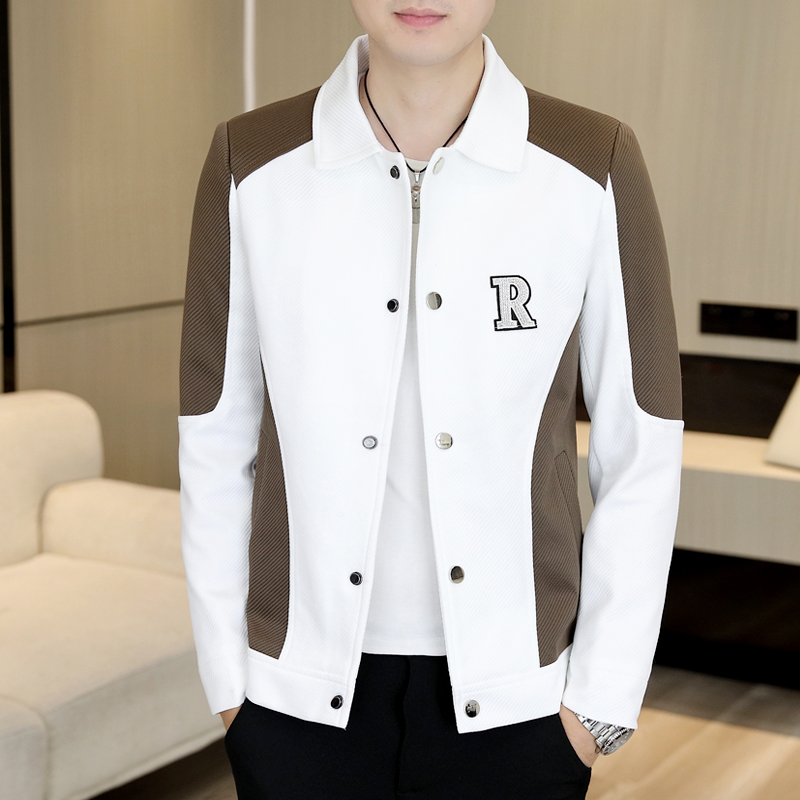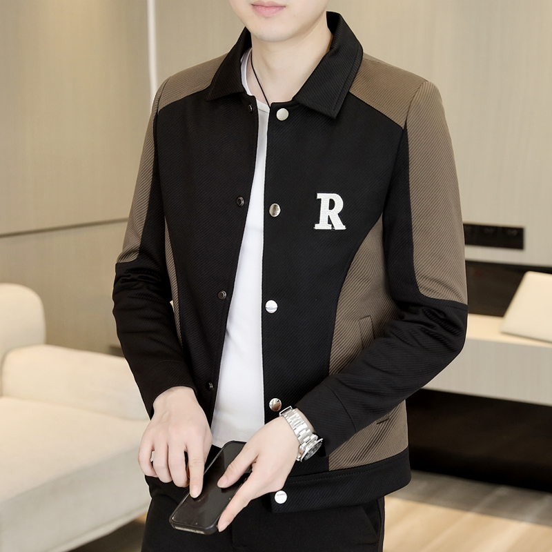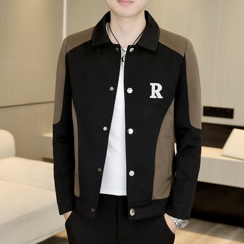 ins时尚帅气潮牌外套男士秋季潮流拼色刺绣夹克高端休闲加绒冬装