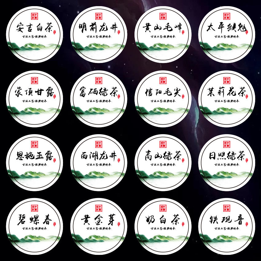 龙井茶绿茶贴纸印刷奶白茶碧螺春茶叶不干胶标签安吉白茶封口贴纸