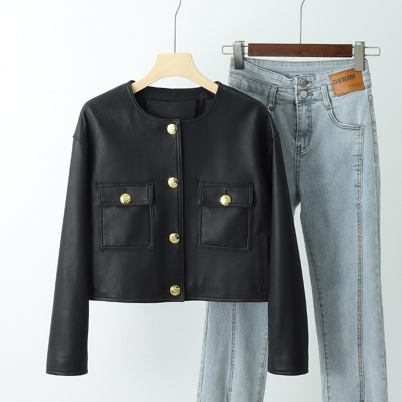 绵羊皮真皮小皮衣女短款真皮外套小个子机车皮夹克欧洲站新款
