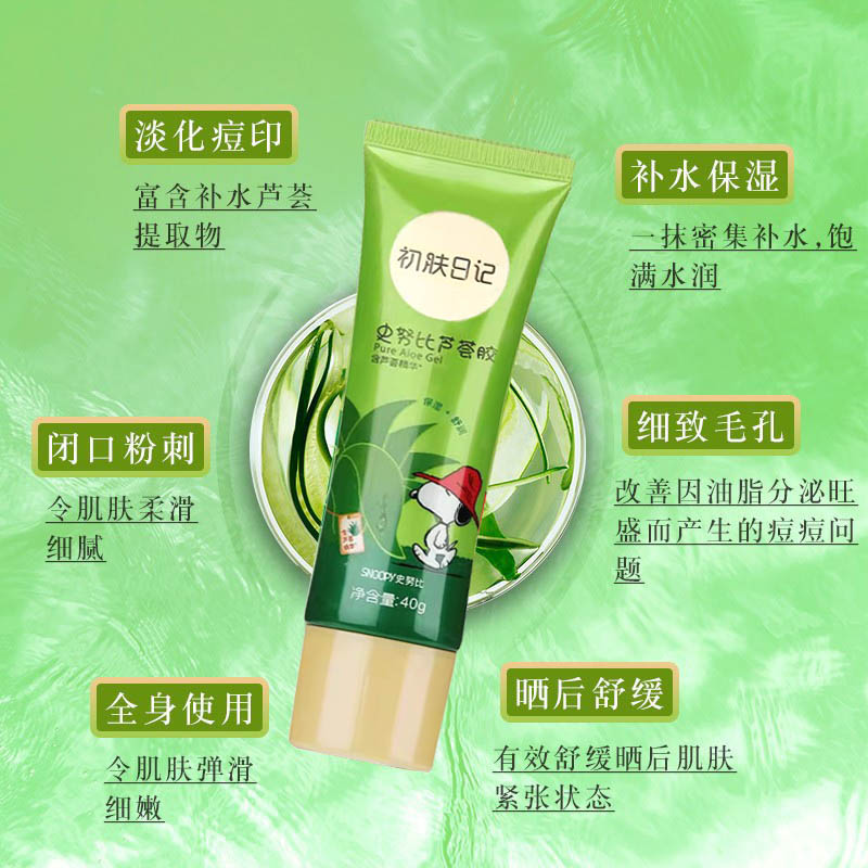 史努比青少年学生多效芦荟胶补水滋润舒缓霜晒后修护清爽控油抗痘