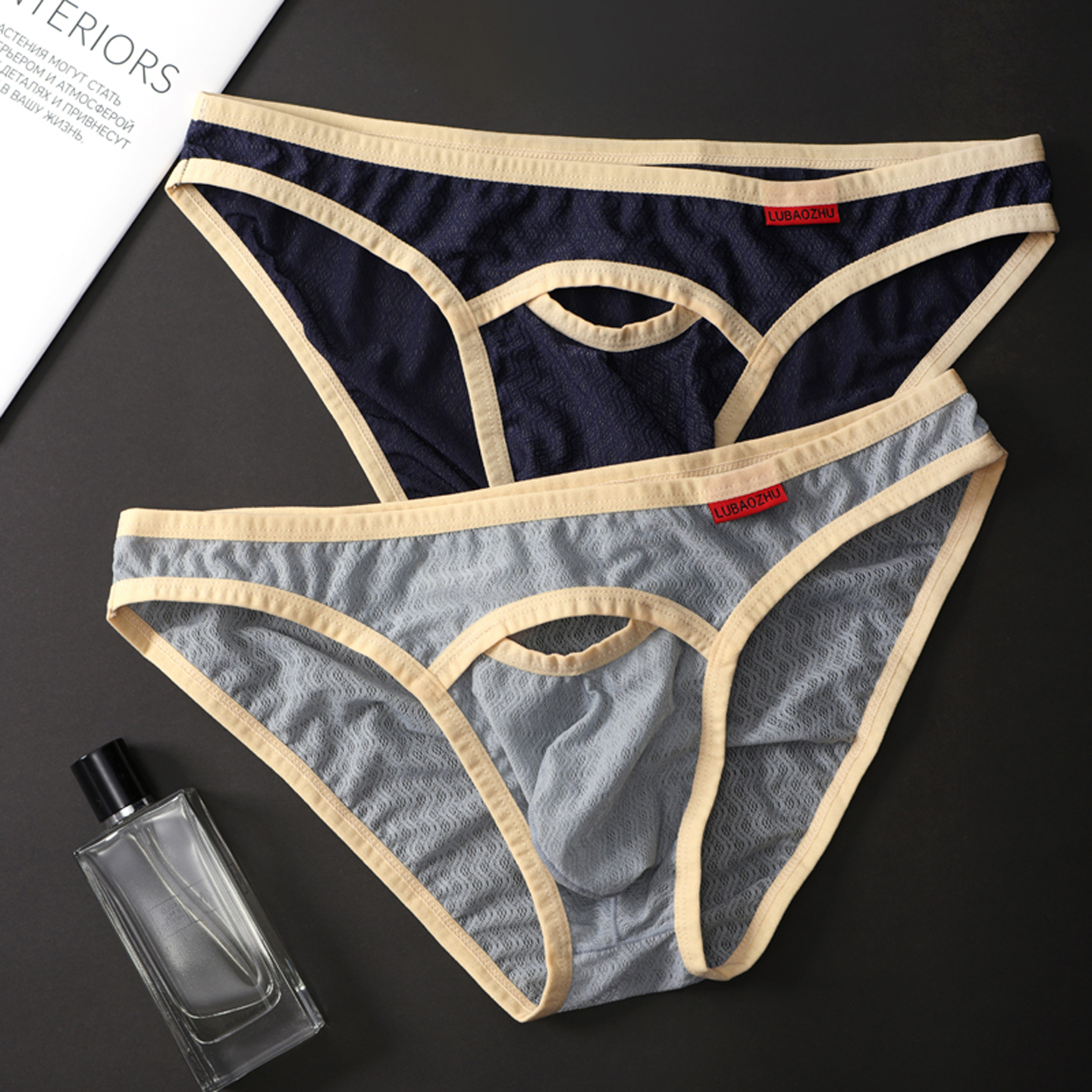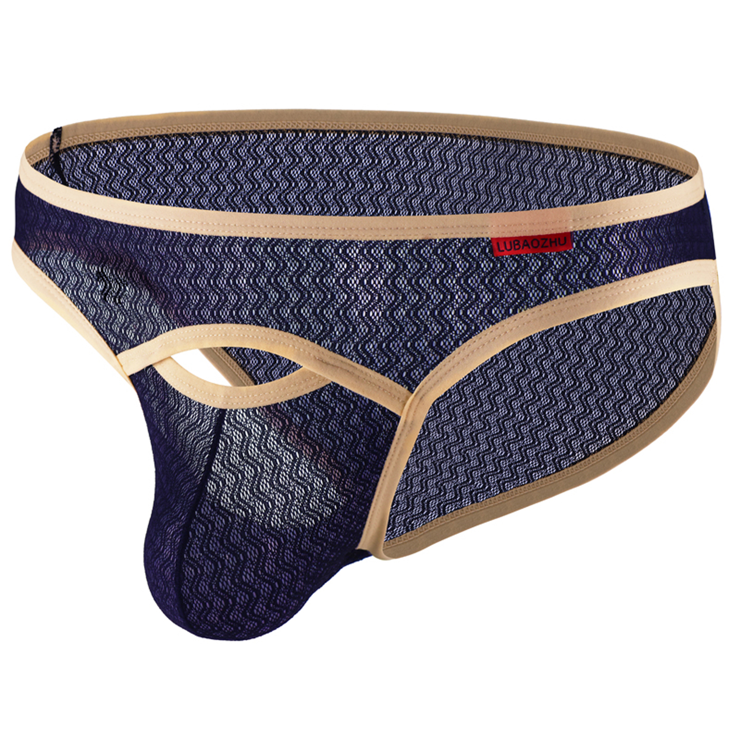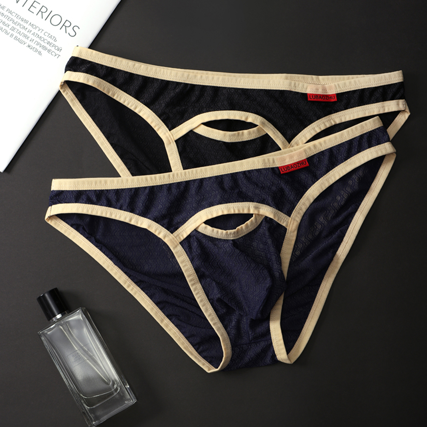 新款男士内裤性感低腰男三角裤舒适透气蕾丝超薄内裤个性情趣短裤