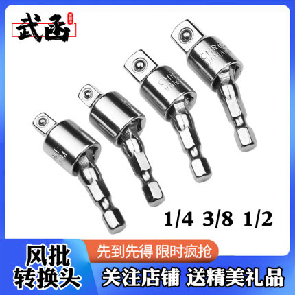 武函电动扳手转换头手电钻风批六角转四方套筒万向节360旋转接头