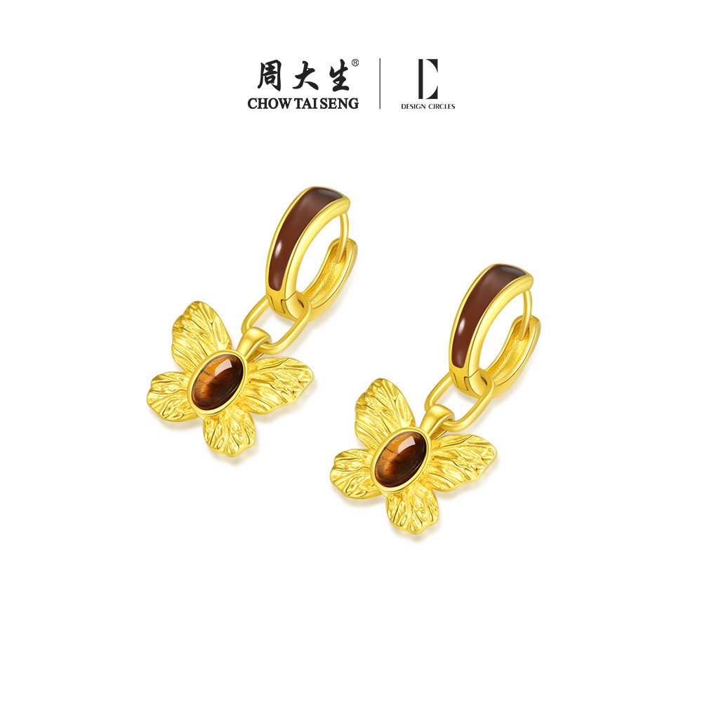 周大生DC蝶恋黑巧耳钉银虎眼石耳饰小众轻奢高级感耳环送圣诞礼物