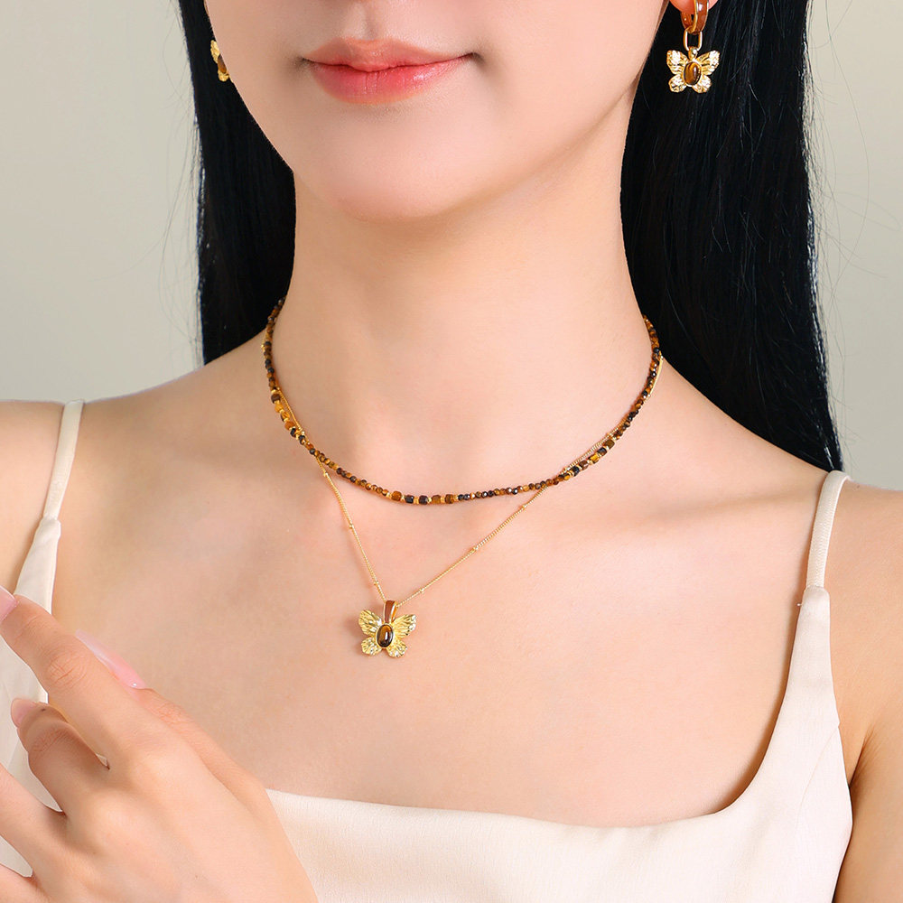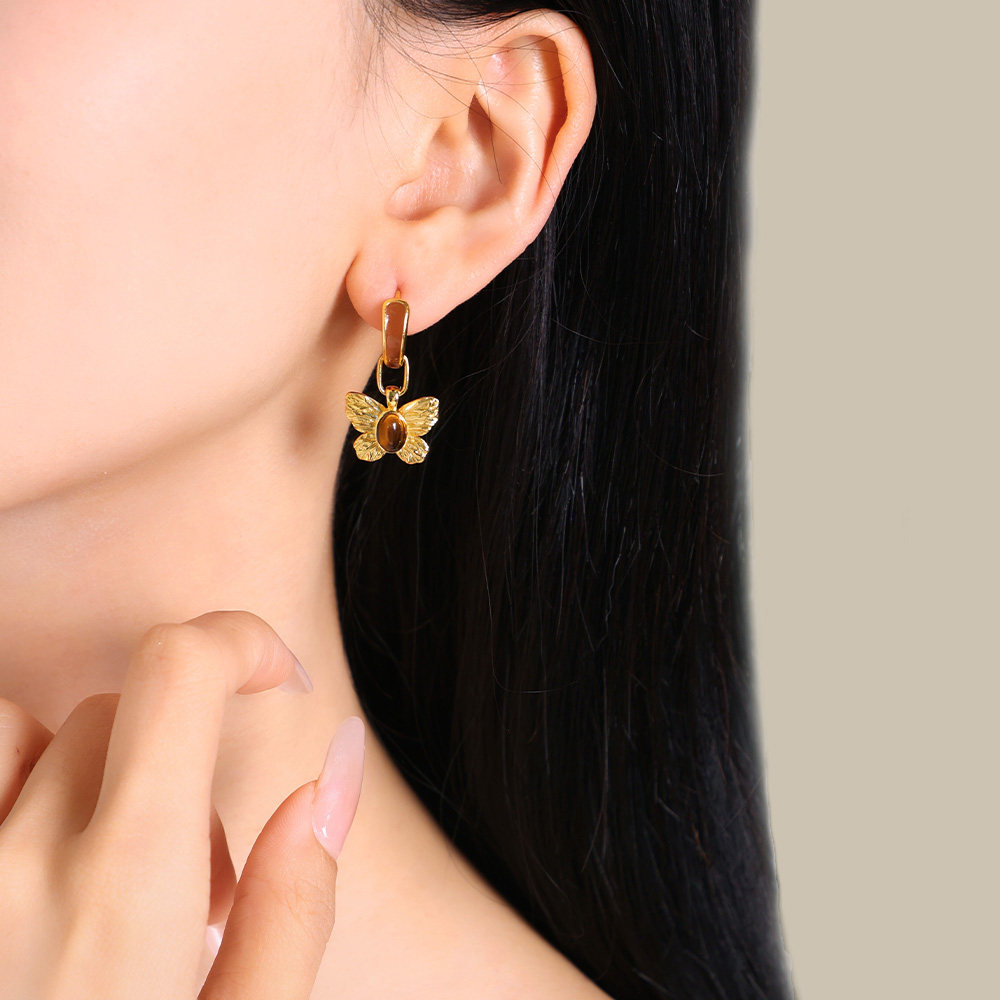 美拉德虎眼石耳钉设界925银