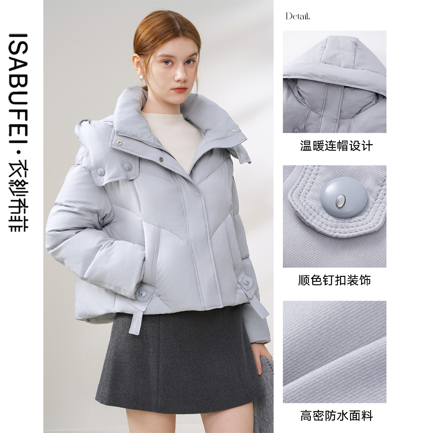 衣纱布菲暖风2025冬装新款连帽白鸭绒短款绗缝羽绒服温柔甜美防水