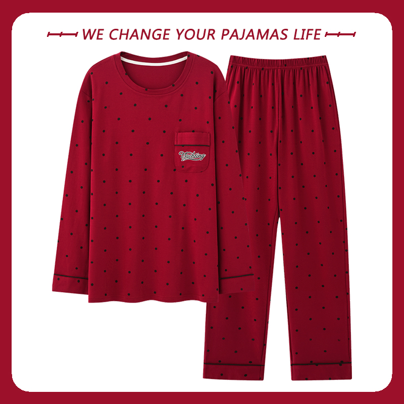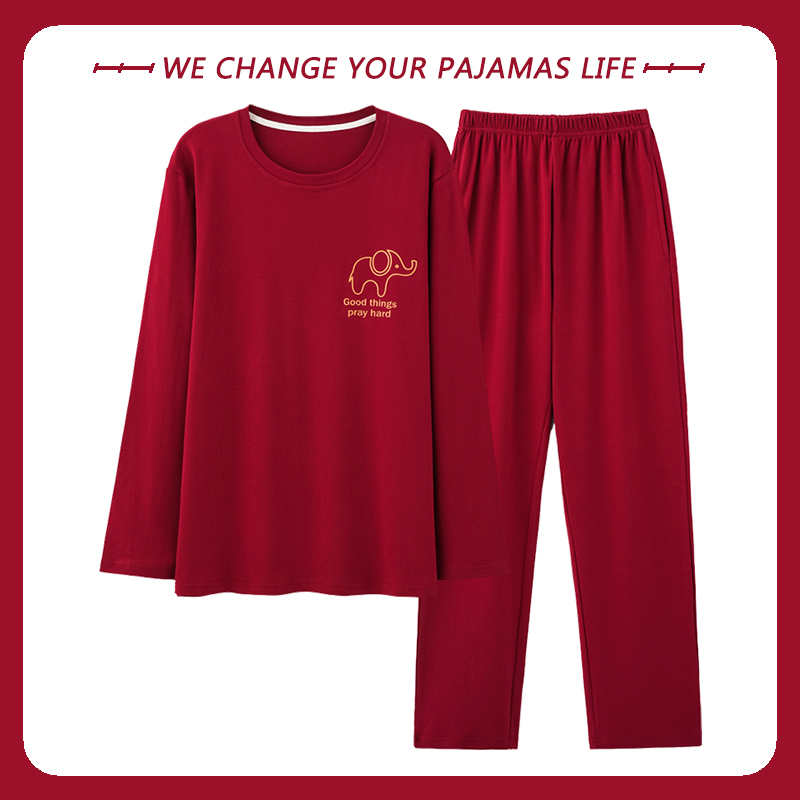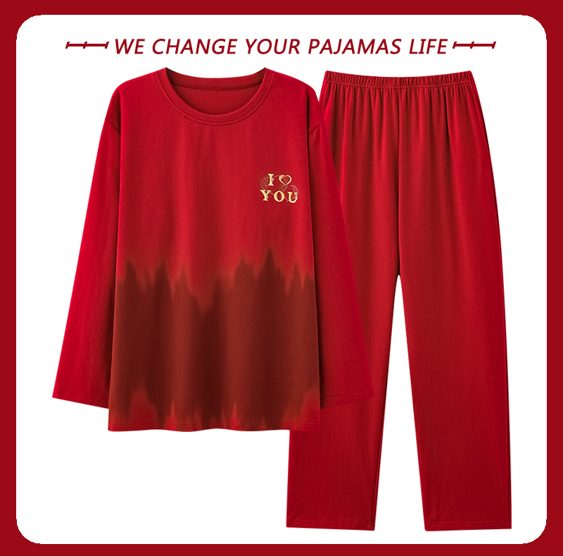 2025年睡衣男士春秋季纯棉红色长袖本命年套装结婚大码套头家居服