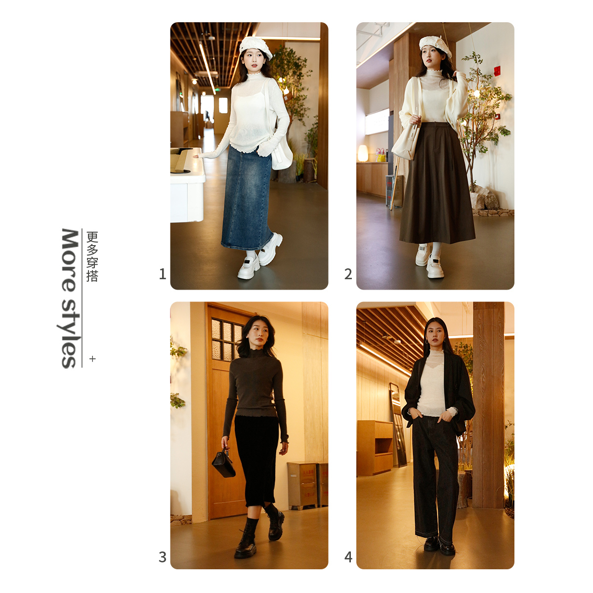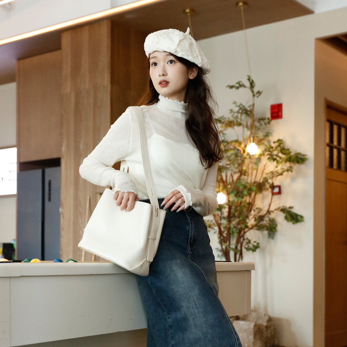 西町村屋半高领木耳边简约针织衫