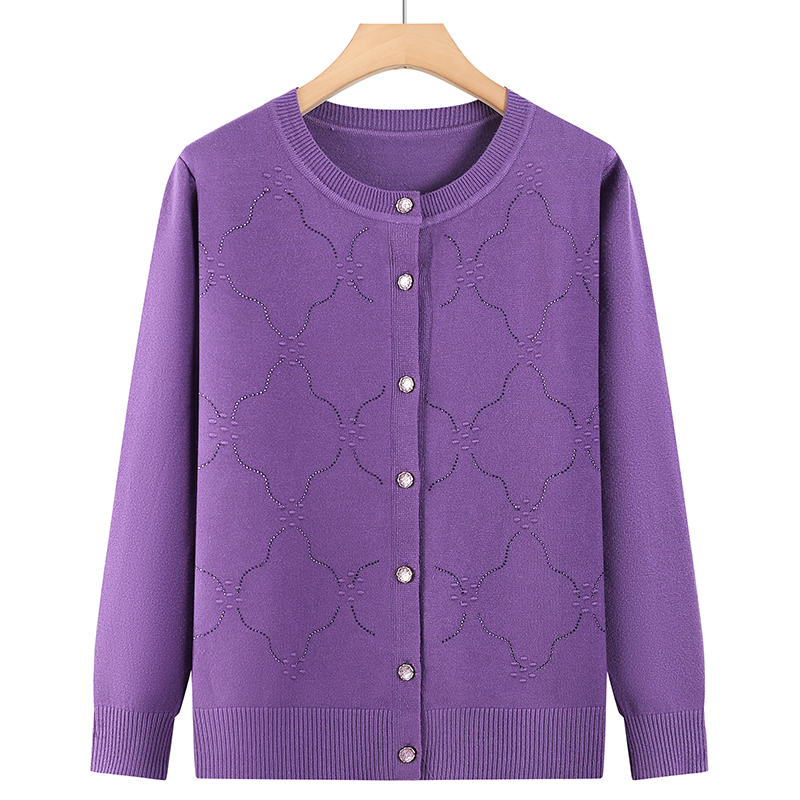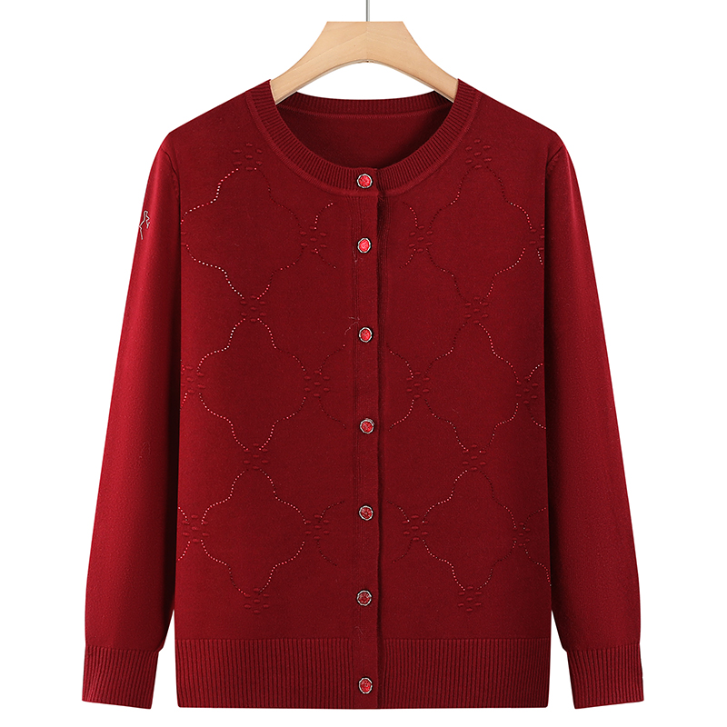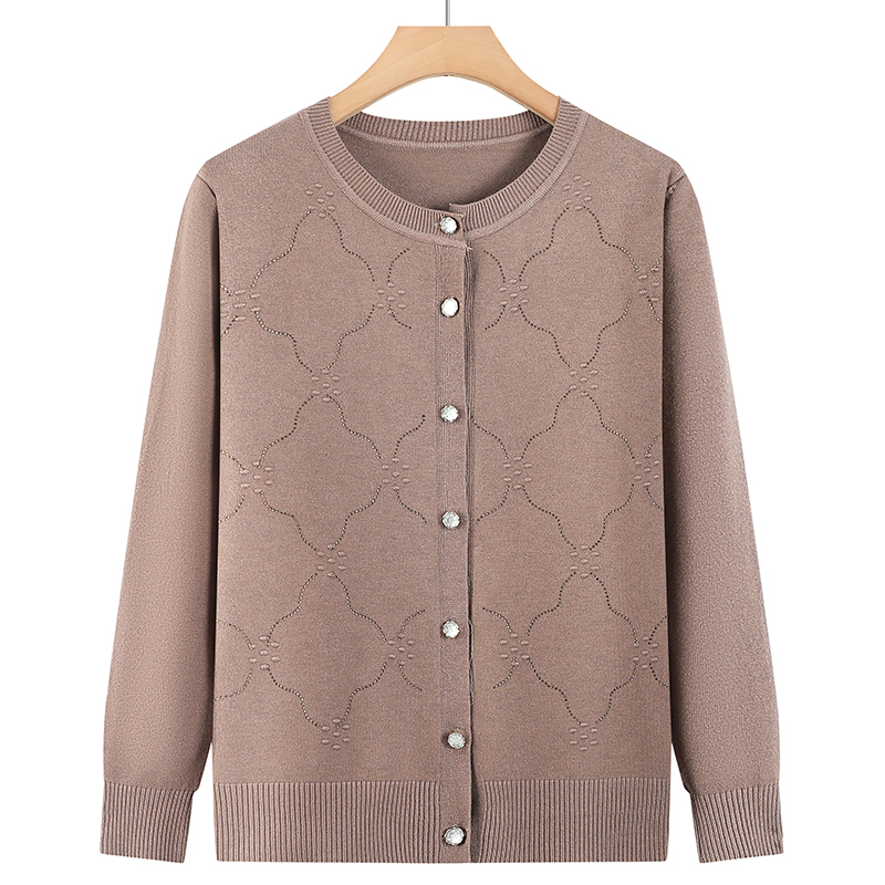 中年春秋妈妈纯色针织毛衣女小开衫 中老年奶奶老人衣服宽松上衣