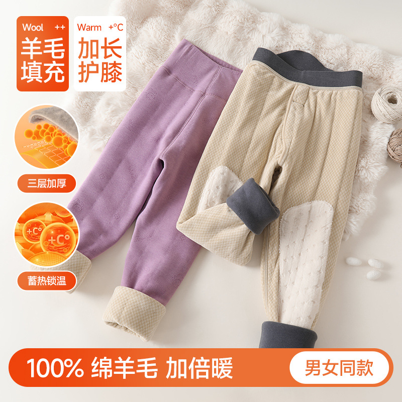 加绒棉打底裤女童冬季棉裤一体裤特厚高腰儿童防寒东北护膝保暖裤