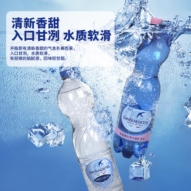 意大利进口圣碧涛天然矿泉水san benedetto充气蓝色饮用水1.5饮料