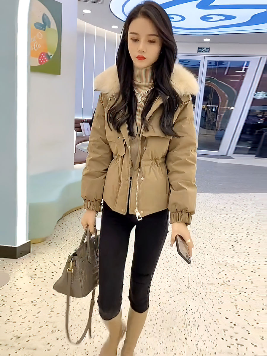 2025年冬季新款韩版宽松羽绒棉加厚大保暖毛领外收腰显瘦短款外套