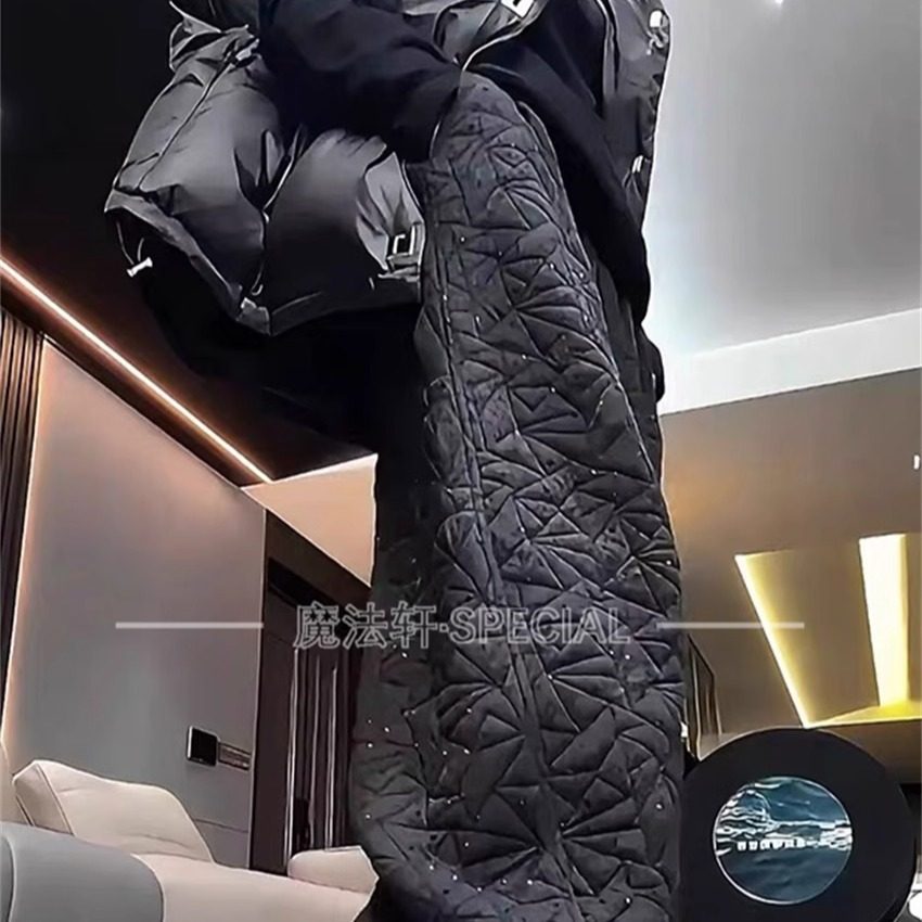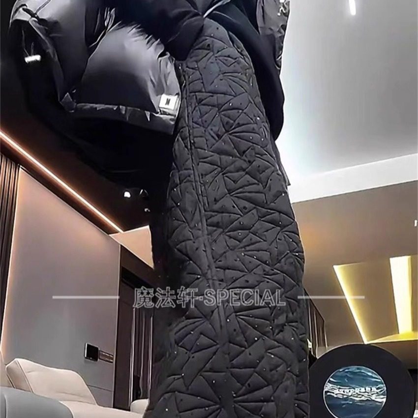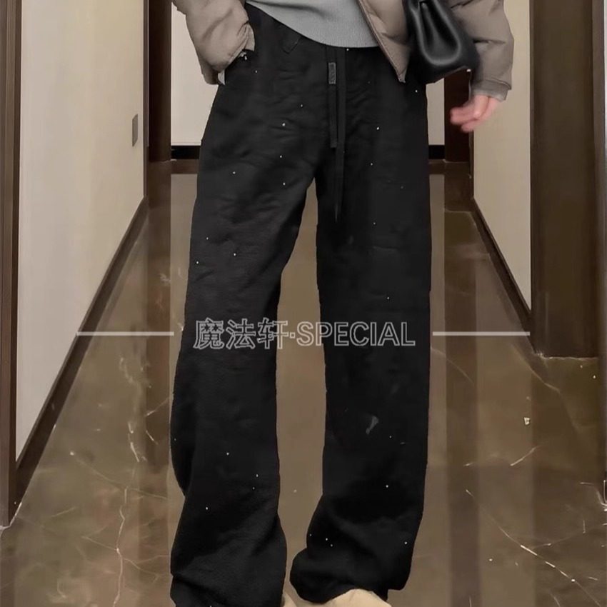 菱格亮钻休闲裤女款2025新款冬季宽松高腰阔腿裤抽绳长裤欧洲站q