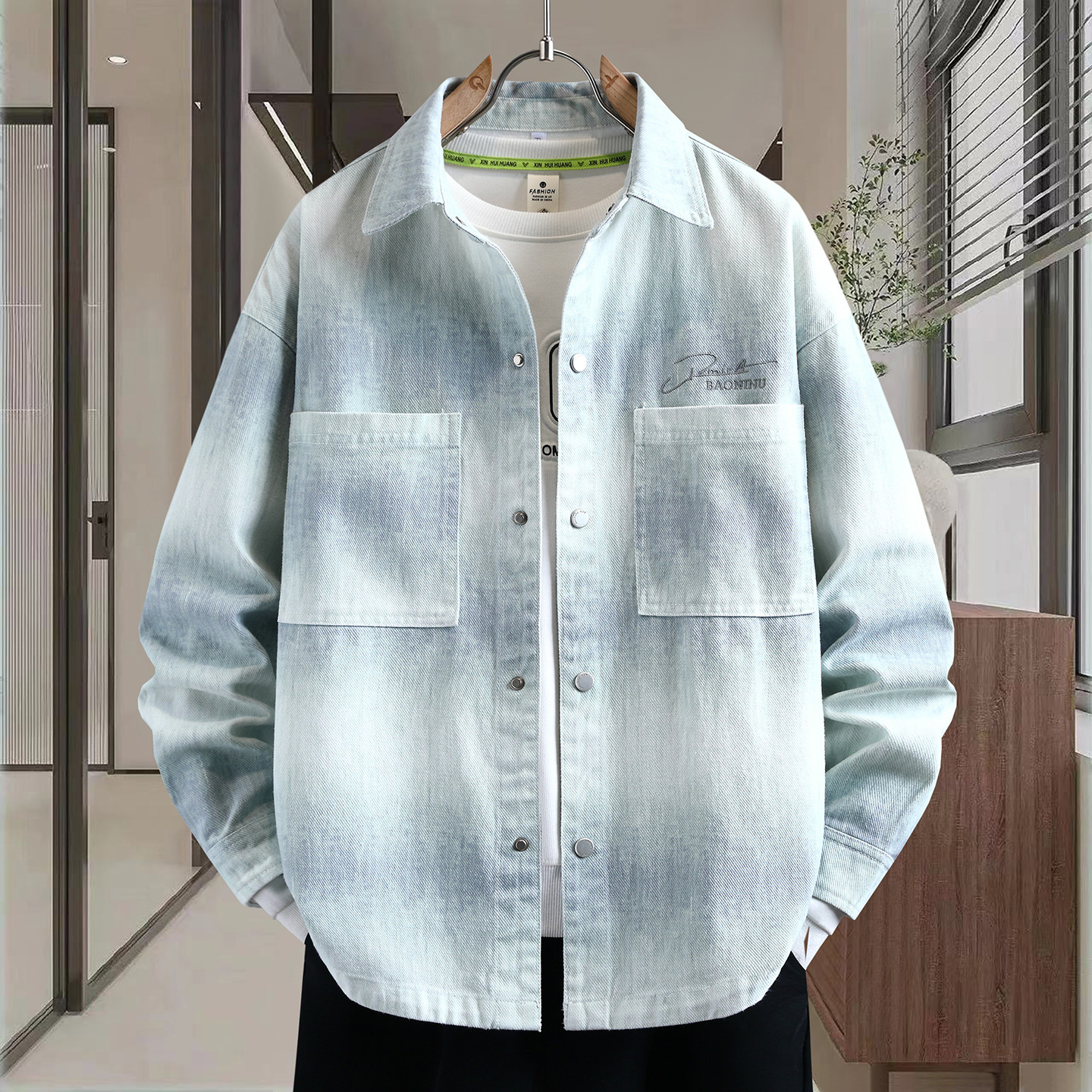 青少年春季宽松牛仔外套15岁男孩初中学生潮流帅气13大童牛子衬衫