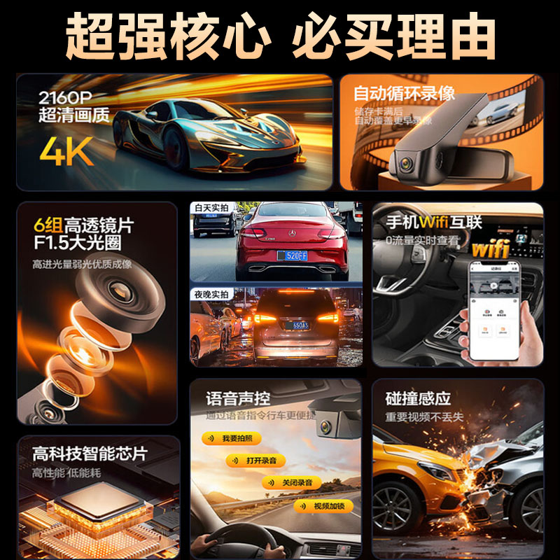 25新款红旗HS5专用行车记录仪免走线4K高清夜视前后双摄停车监控