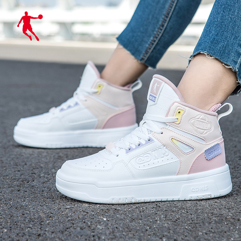 中国乔丹女鞋板鞋官方旗舰2025冬季新款运动鞋高帮鸳鸯鞋旅游鞋子