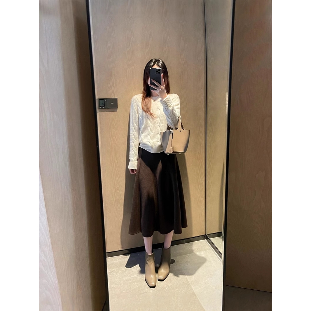 八片裙法式真丝羊绒醋酸女装裙子松紧腰毛呢半身裙A字伞裙女秋冬