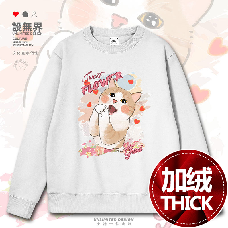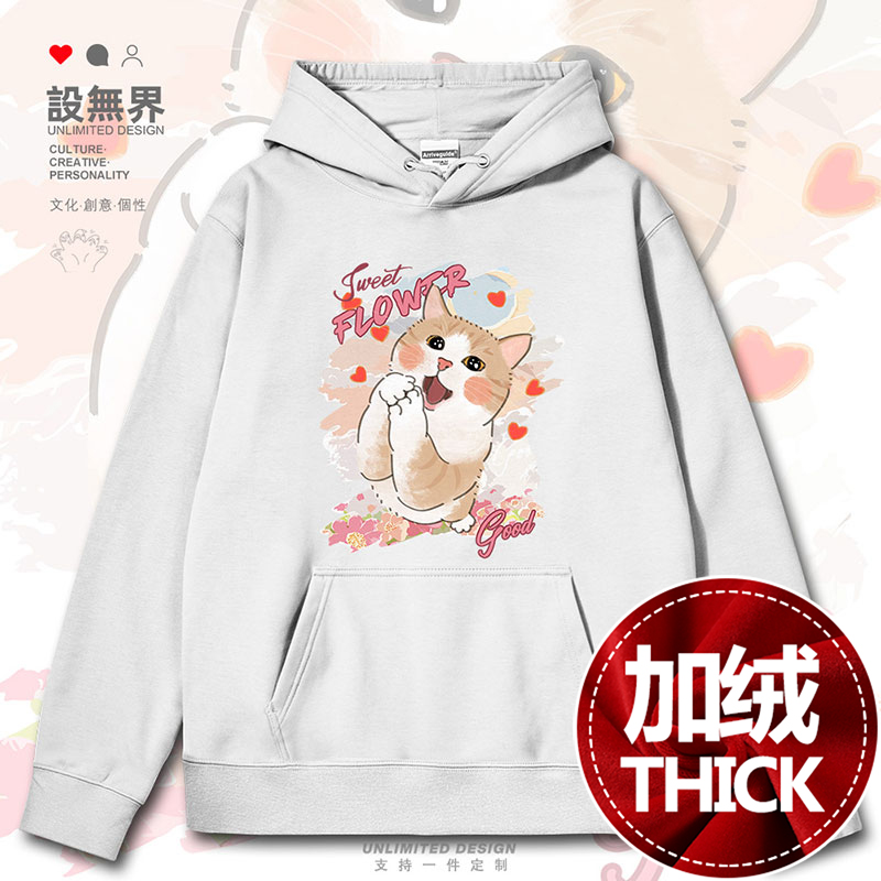 原创可爱撒娇猫咪萌宠趣味油画花朵连帽卫衣男女套头0015设 无界