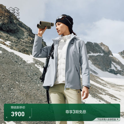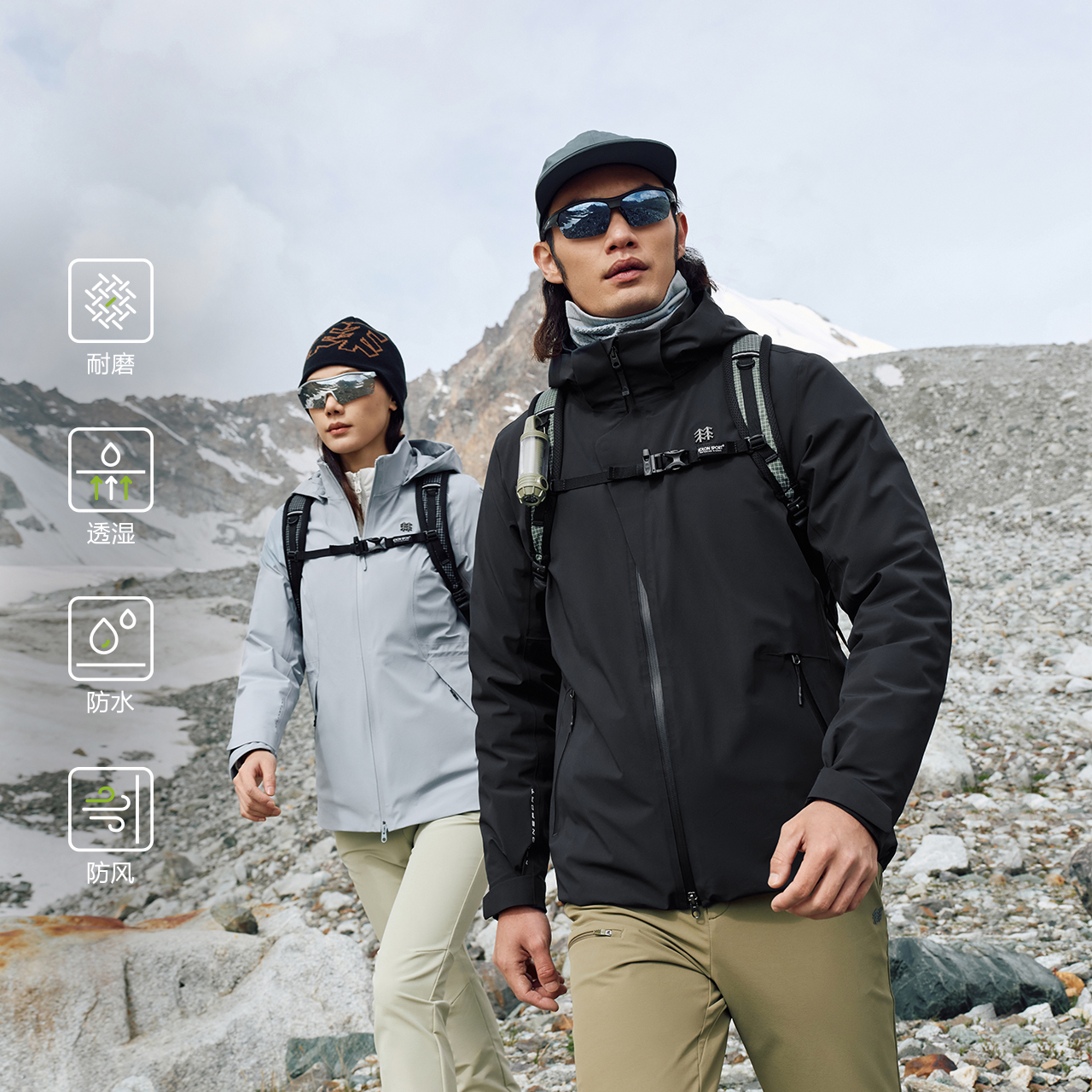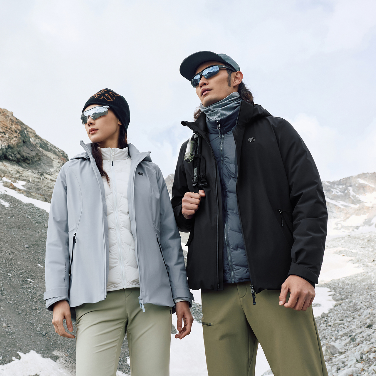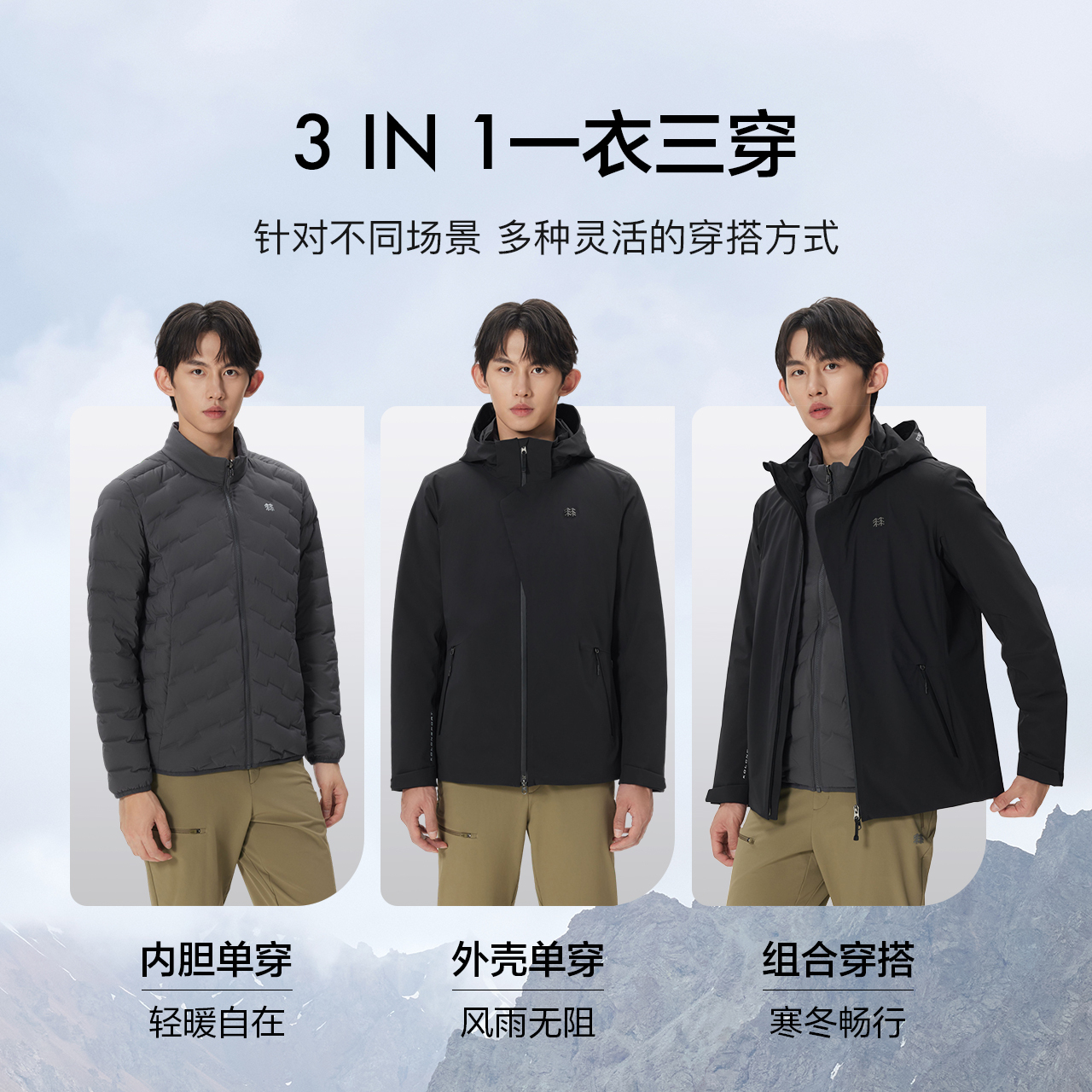 KOLON SPORT可隆冲锋衣2级防泼水防风男女连帽羽绒三合一夹克