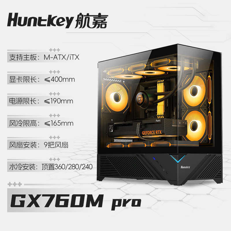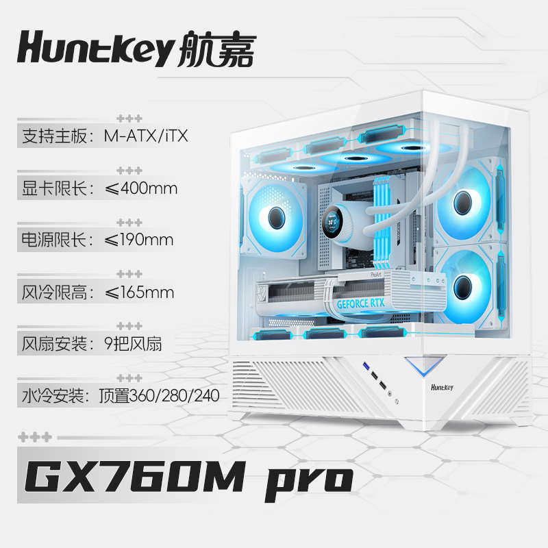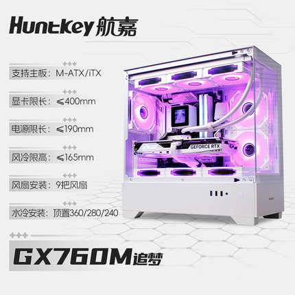 航嘉GX760M PRO追梦海景房机箱无立柱水冷电脑台式主m-atx白色DIY