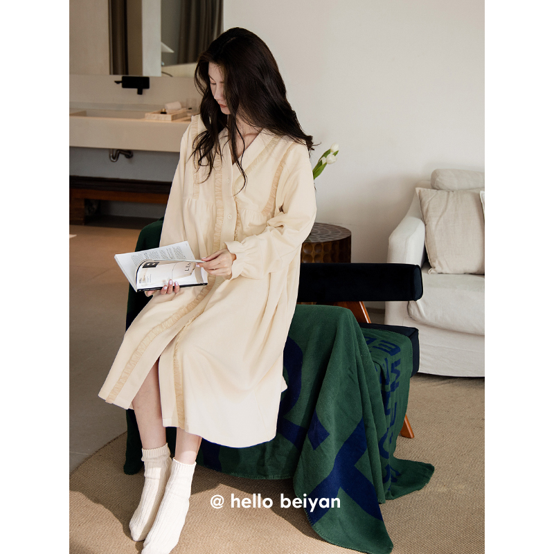 贝妍珊瑚绒睡衣女款秋冬性感开衫浴袍甜美少女保暖海岛绒睡裙睡袍