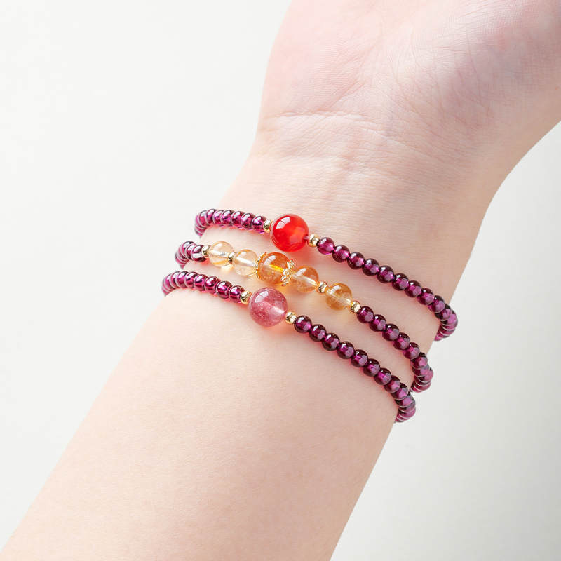 天然酒红色紫牙乌石榴石手链原创diy手串散珠转运珠多层水晶手串