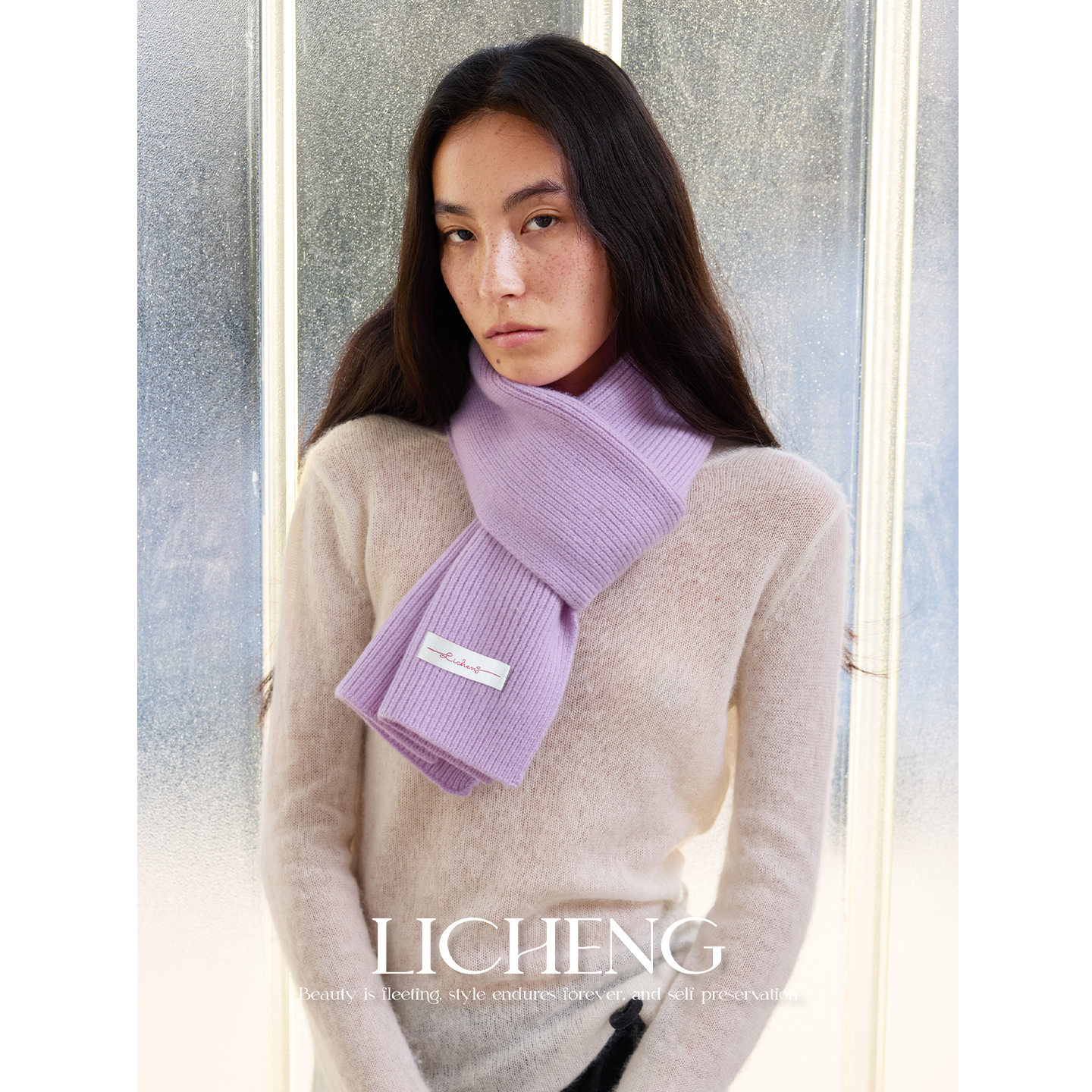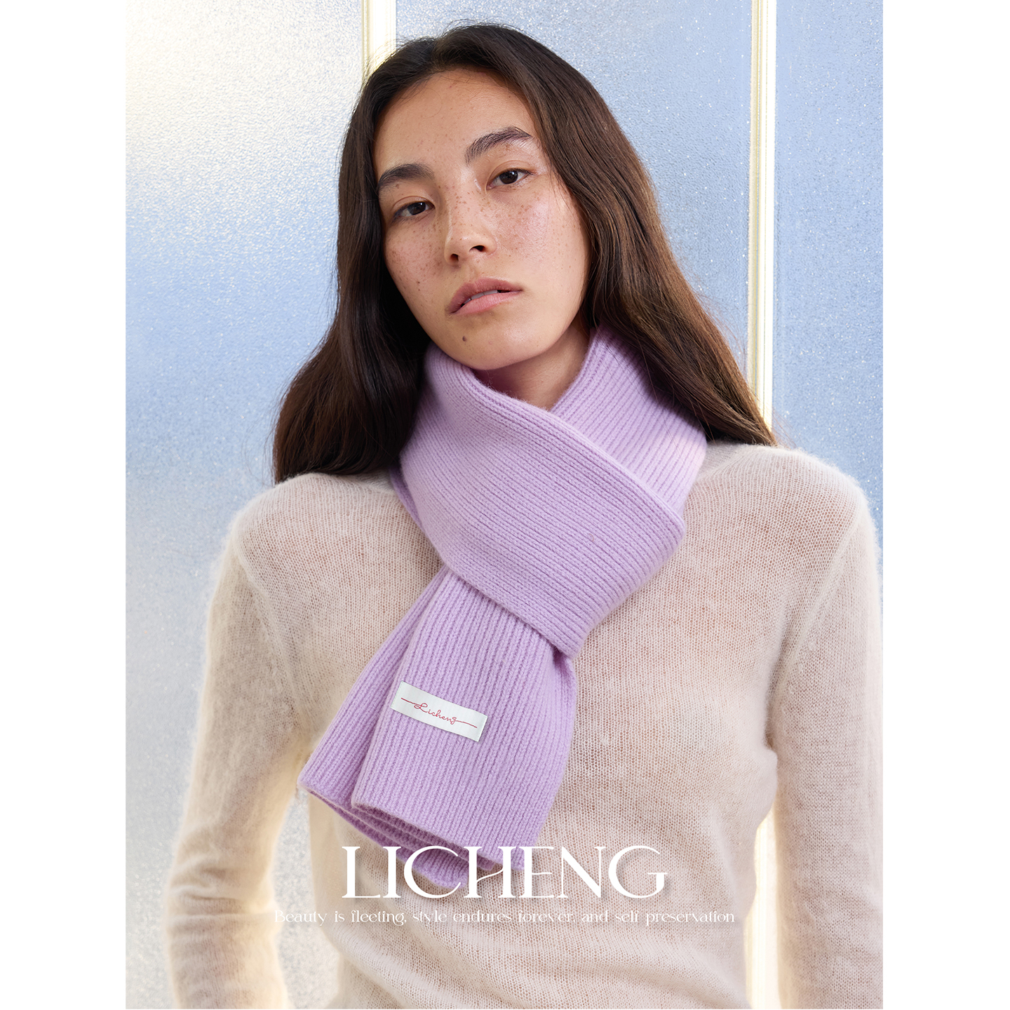 礼诚 莫奈花园100%羊毛围巾女秋冬保暖针织围脖加厚坑条披肩送礼