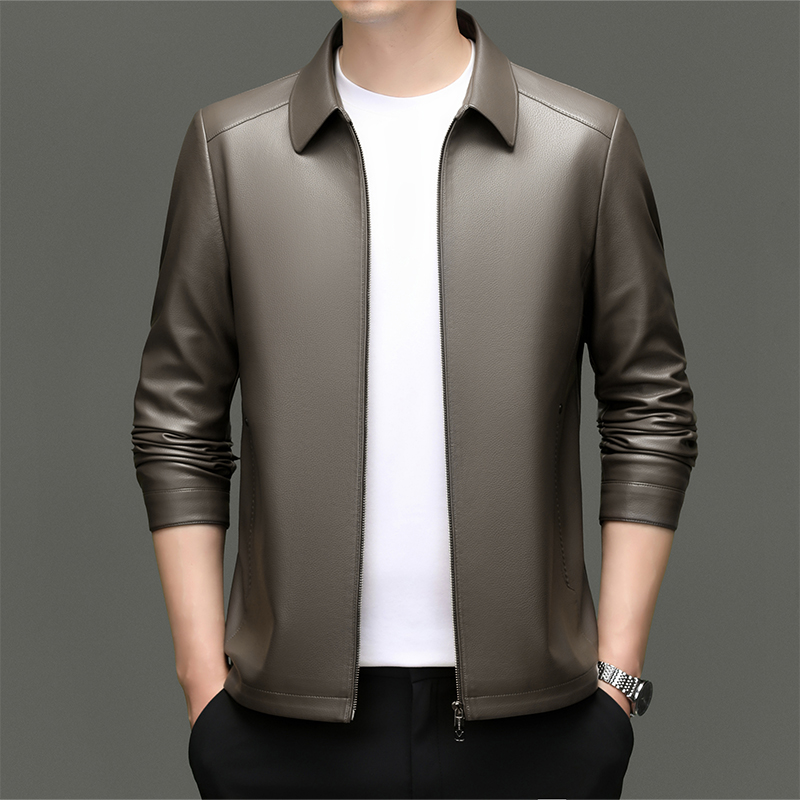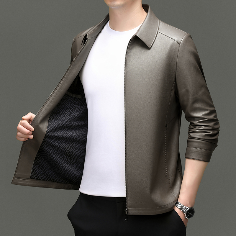 秋冬男翻领皮衣真皮加绒皮夹克外套保暖加厚青年皮茄克风衣潮皮袄