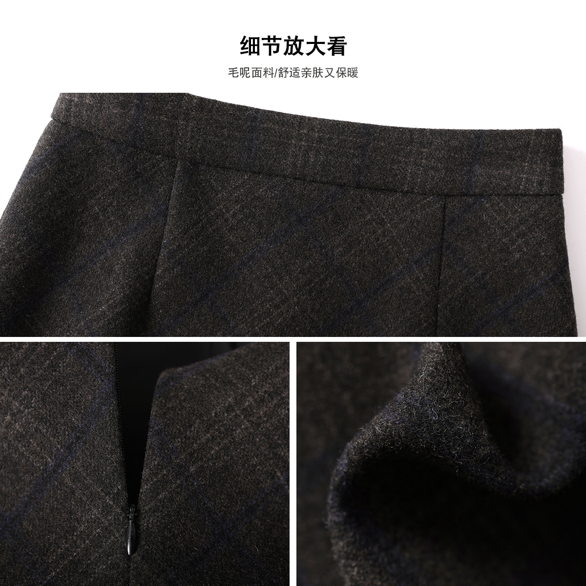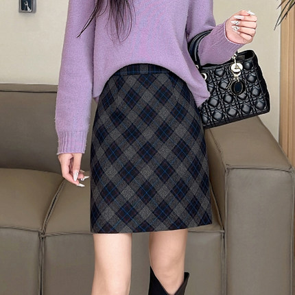 羊毛呢格纹短裙女2025冬季新款高腰格子A字半身裙气质显瘦包臀裙